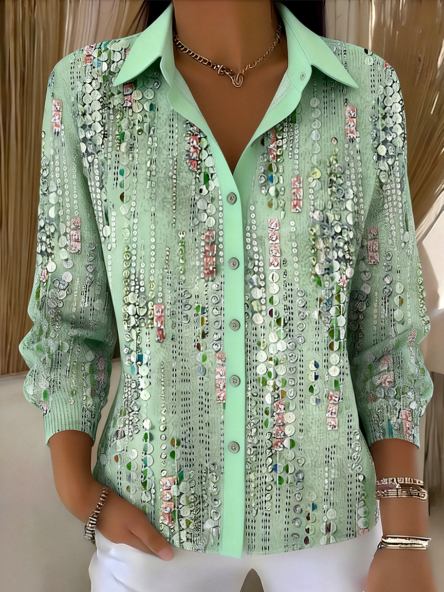 Shirt Collar Gradient Pattern Loose Simple Shirt