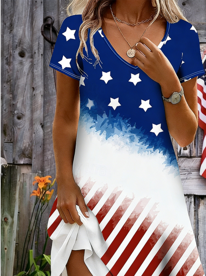 V Neck Vintage Gradient Pattern Dress With No