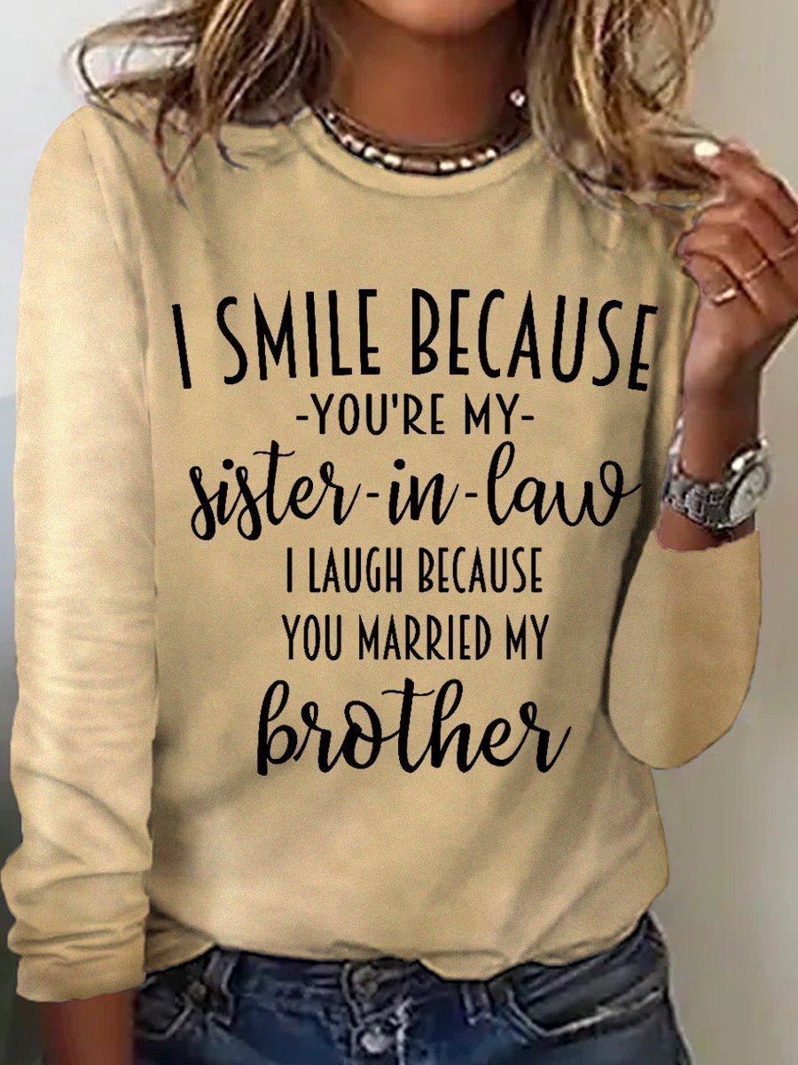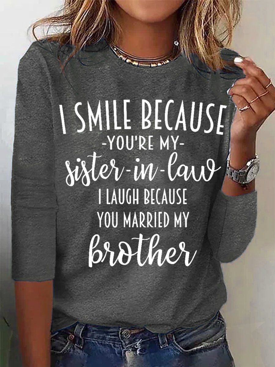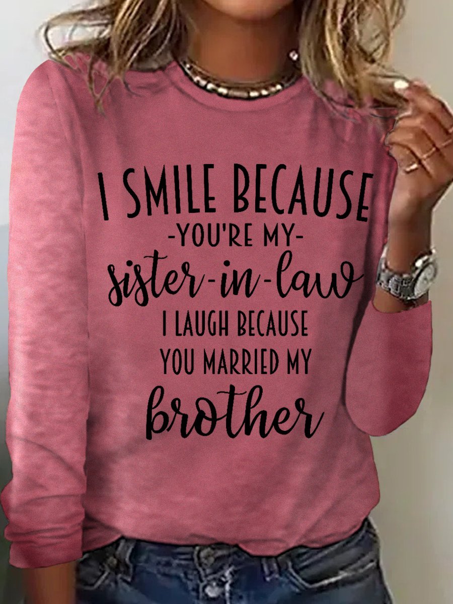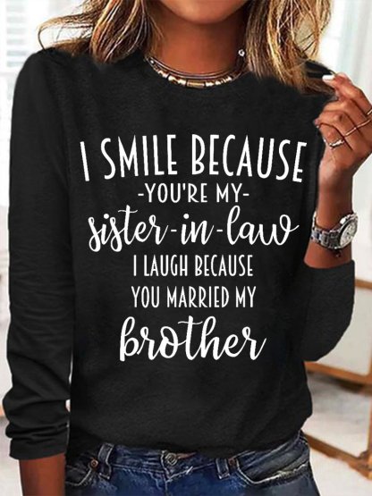 Women Funny Word I Smile Because You're My Sister In Law Simple Long sleeve Top