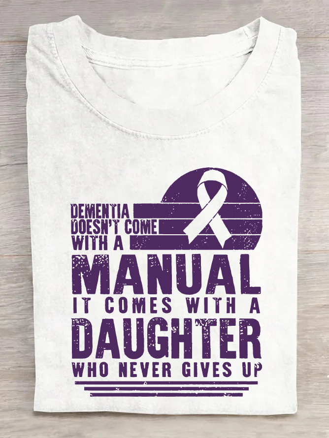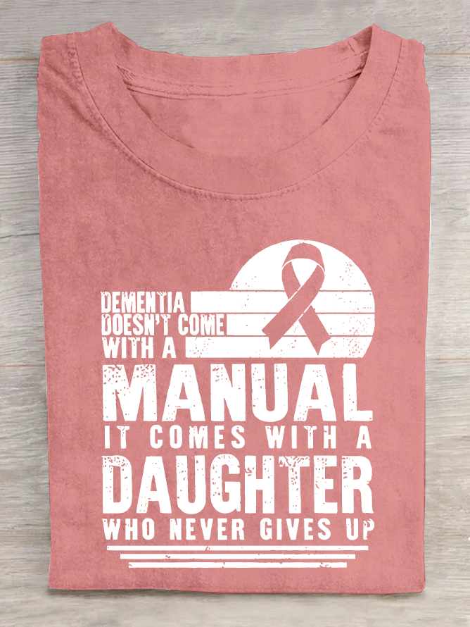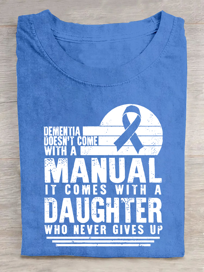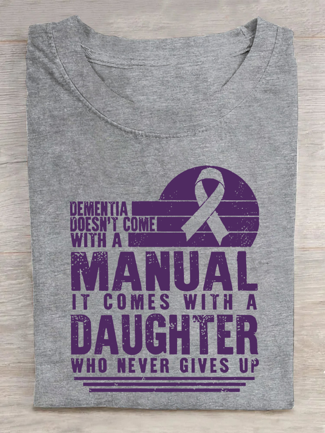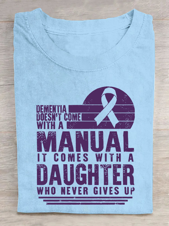 Women's Dementia Doesn't Come With A Manual Dementia Warrior Support Alzheimer's Awareness Print Cotton T-Shirt