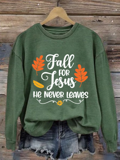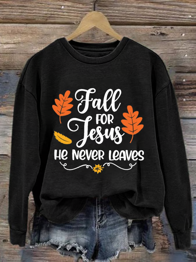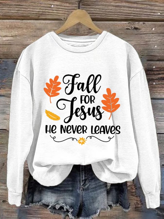 Women's Fall For Jesus He Never Leaves Autumn Vibes Print Sweatshirt