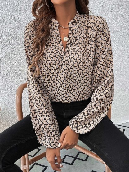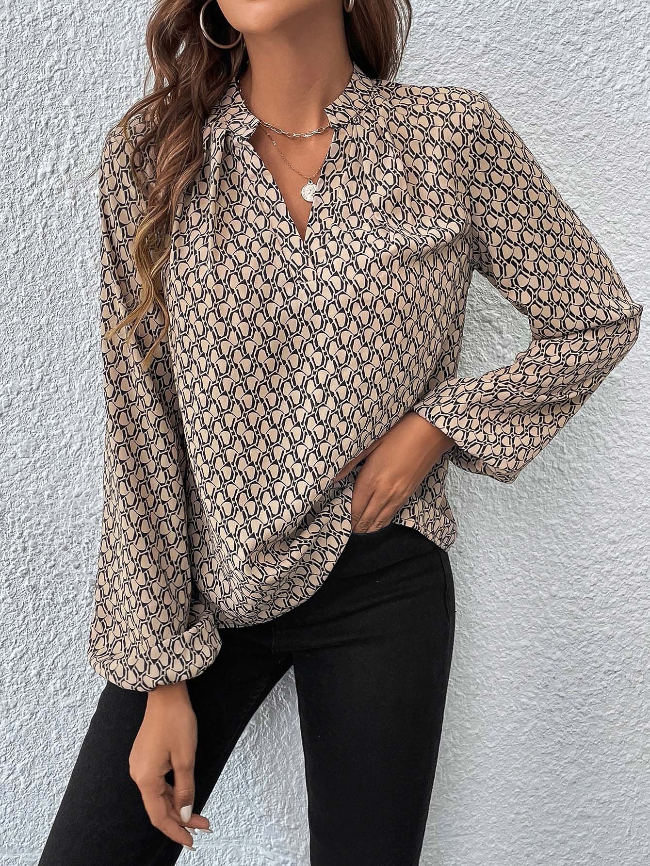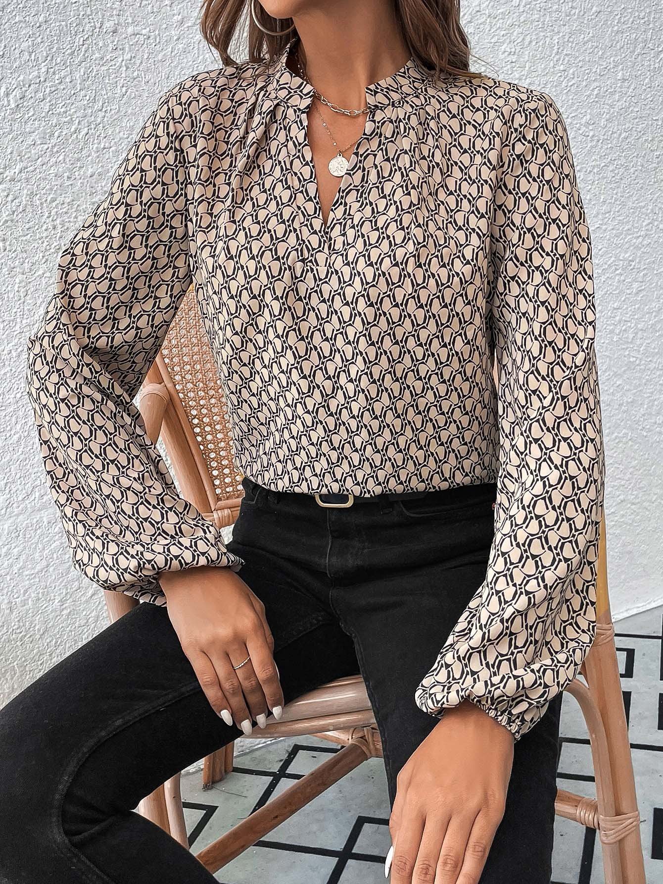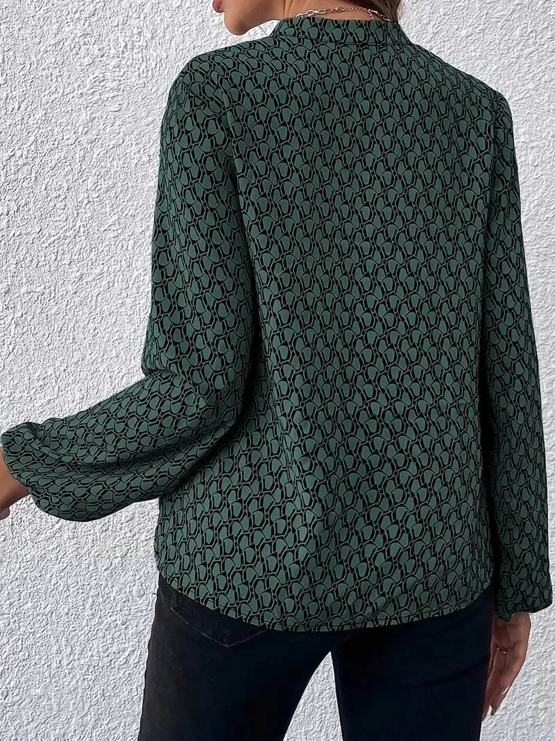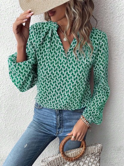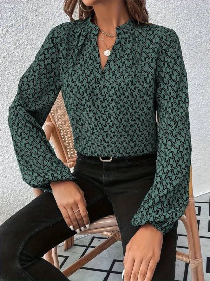Women's Long Sleeve Shirt Spring/Fall Green Geometric Split Joint V Neck Balloon Sleeve Daily Going Out Casual Top