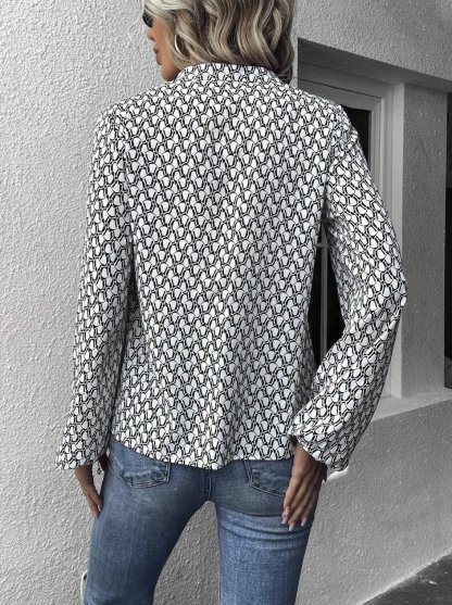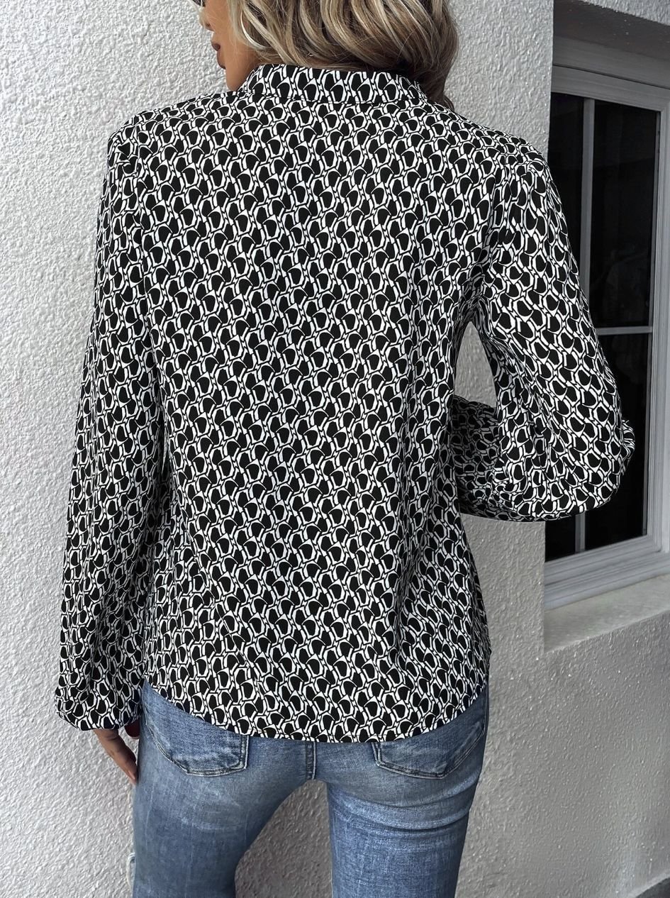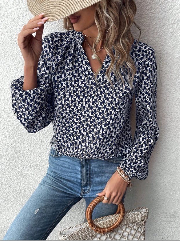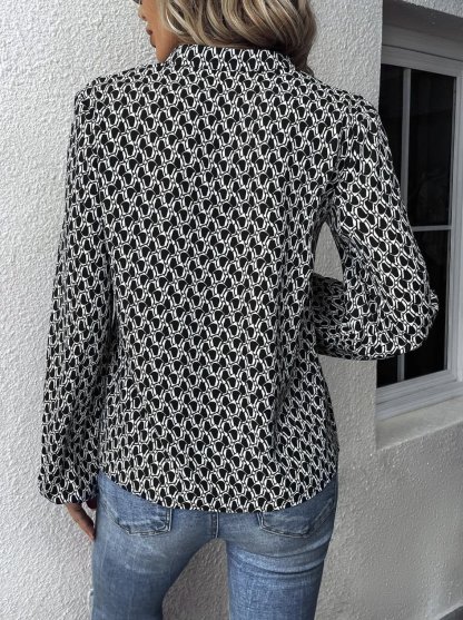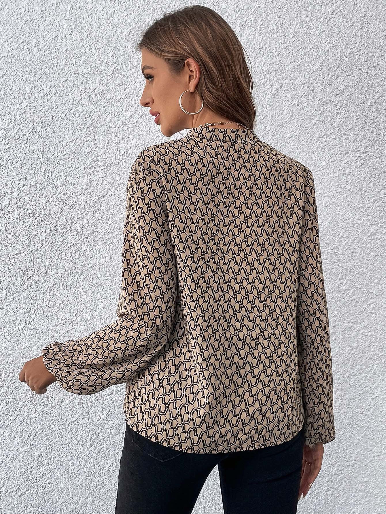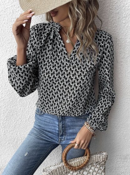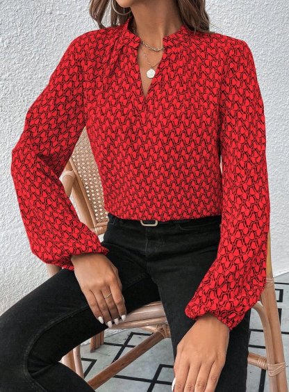 Women's Long Sleeve Shirt Spring/Fall Green Geometric Split Joint V Neck Balloon Sleeve Daily Going Out Casual Top