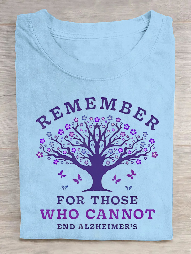 Women's Remember For Those Who Cannot Dementia Alzheimer's Disease Awareness Printed Cotton T-Shirt