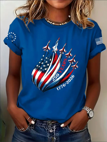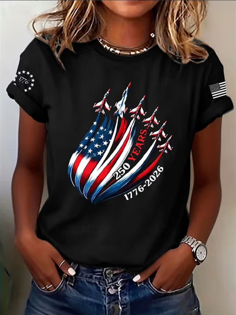 Women's Short Sleeve T-shirt Summer Black Independence Day (Flag) Printing Jersey Crew Neck Daily Going Out Casual Top