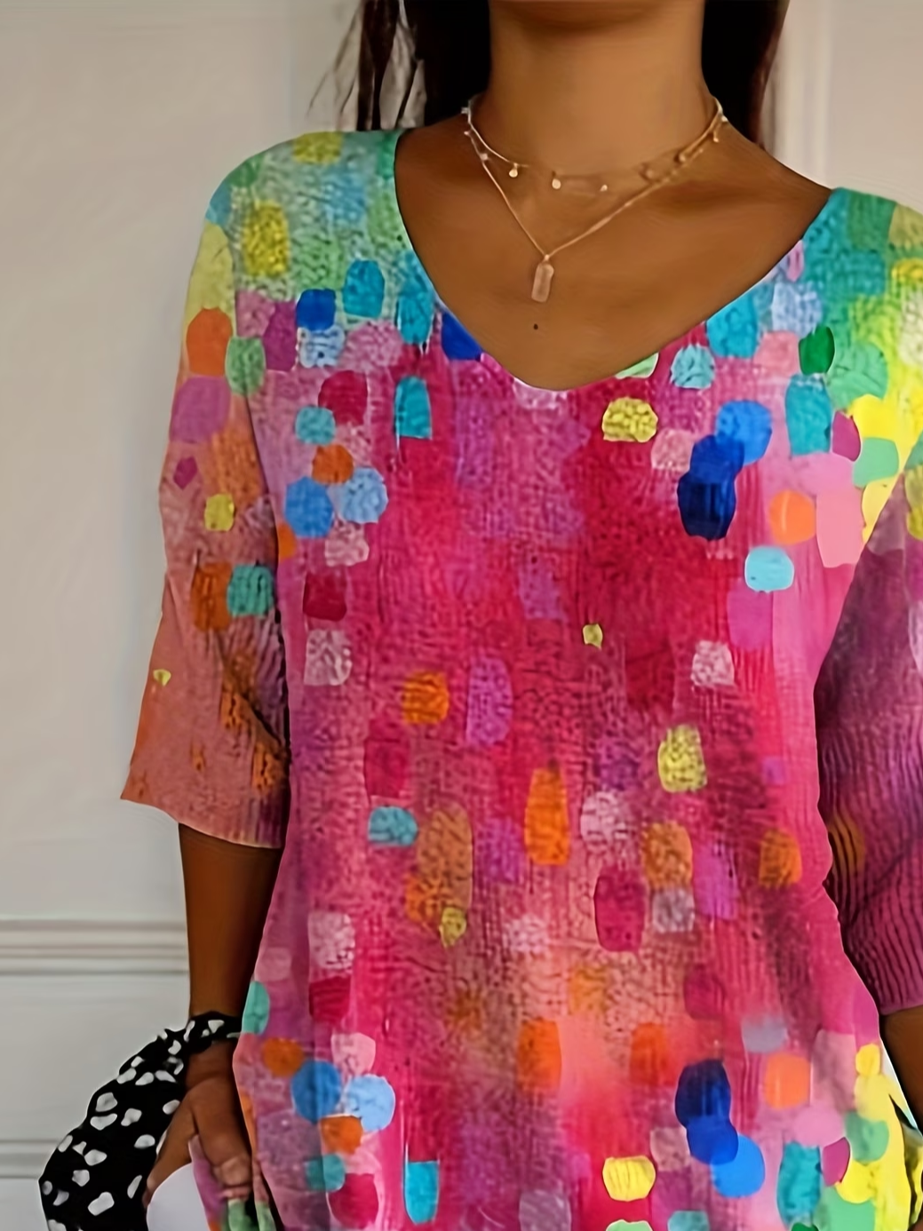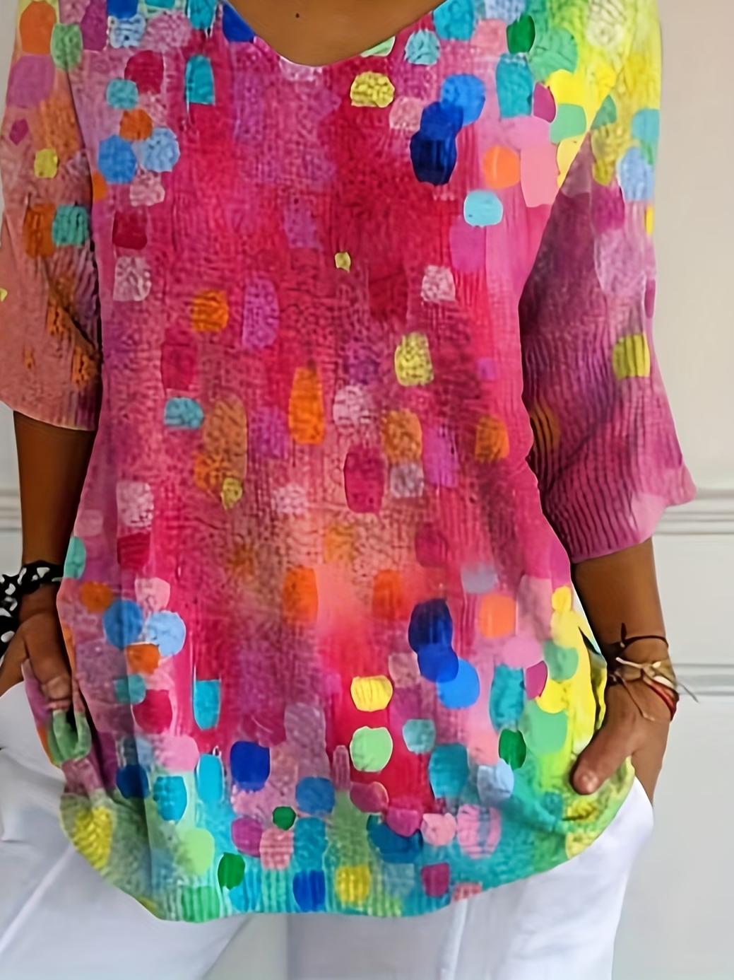 Women's Three Quarter Sleeve T-shirt Spring/Fall Pink Abstract Printing V Neck Daily Going Out Casual Top