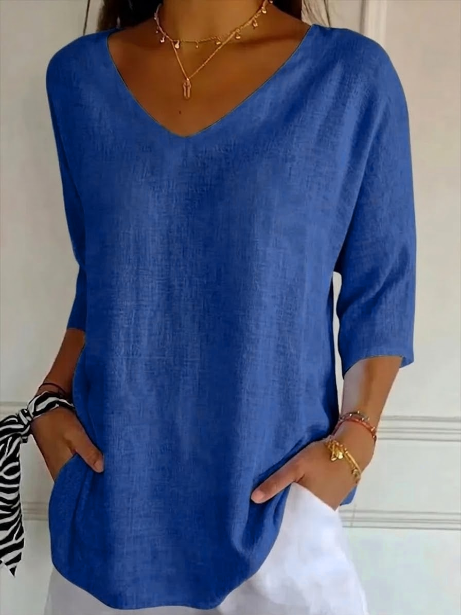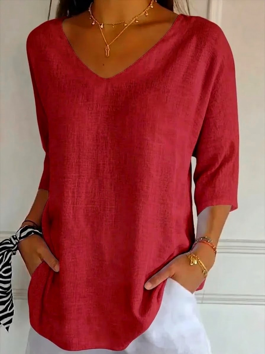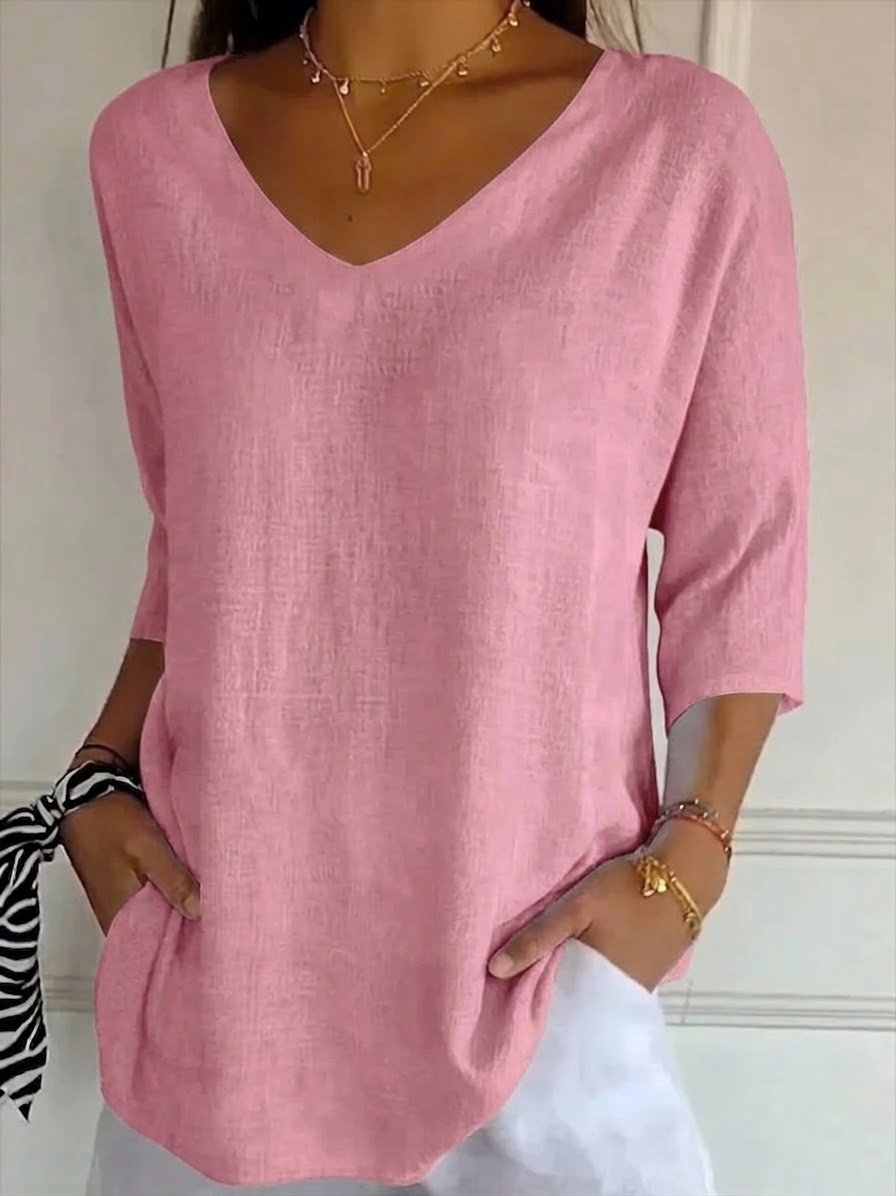 Women's Three Quarter Sleeve T-shirt Spring/Fall White Plain Printing V Neck Daily Going Out Casual Top