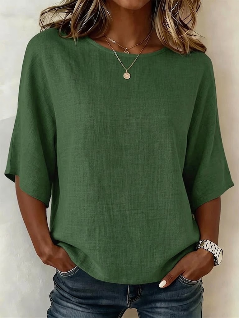 Shirt Collar Simple Regular Fit Linen Blend Shirt