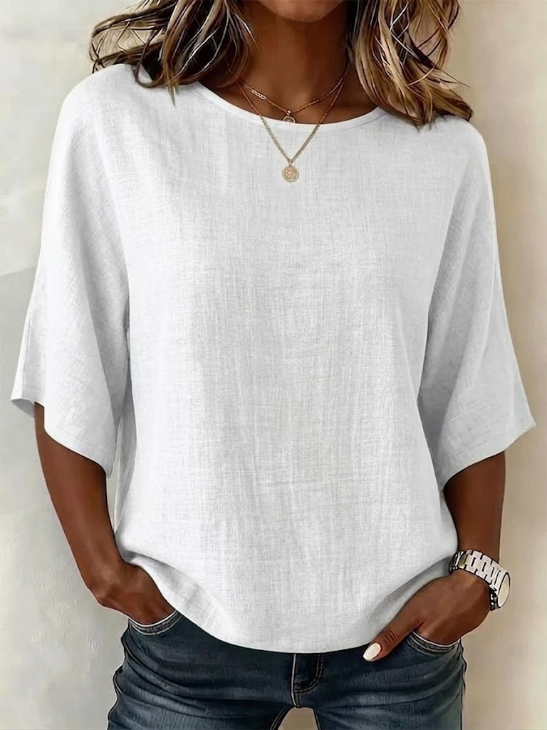 Women's Half Sleeve Blouse Summer White Plain Printing Crew Neck Daily Going Out Vintage Top