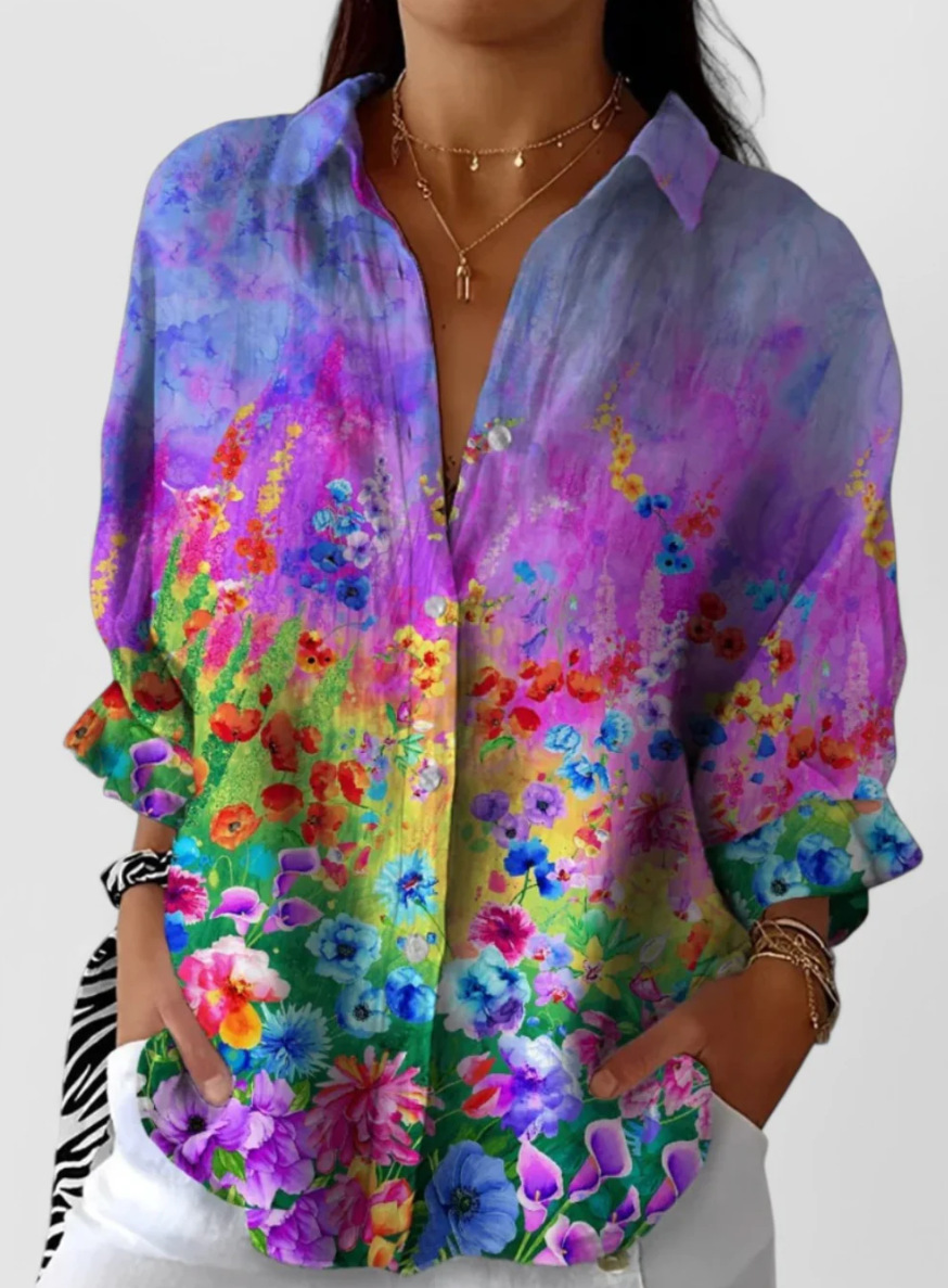 Shirt Collar Gradient Pattern Loose Simple Shirt