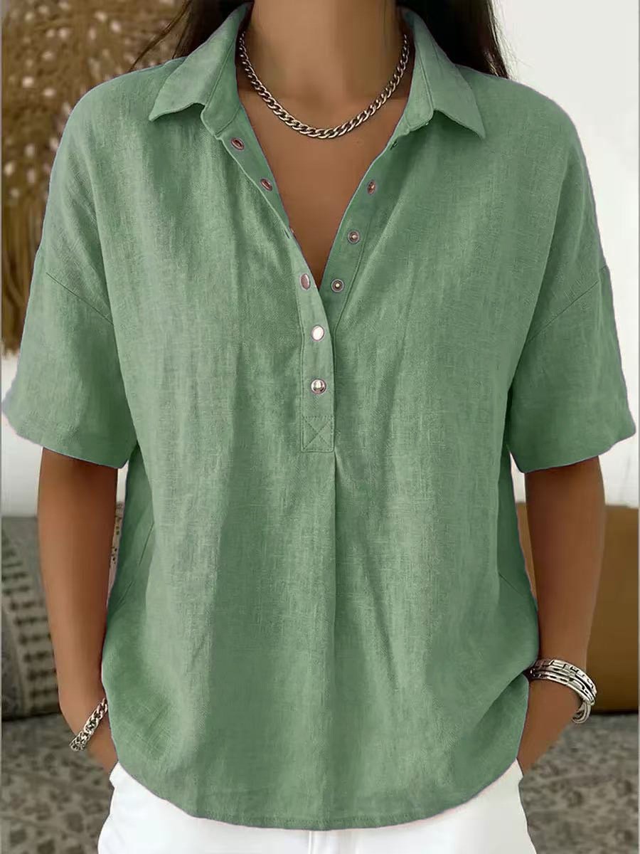 Plain Loose Cotton And Linen Button Vintage Casual Shirt