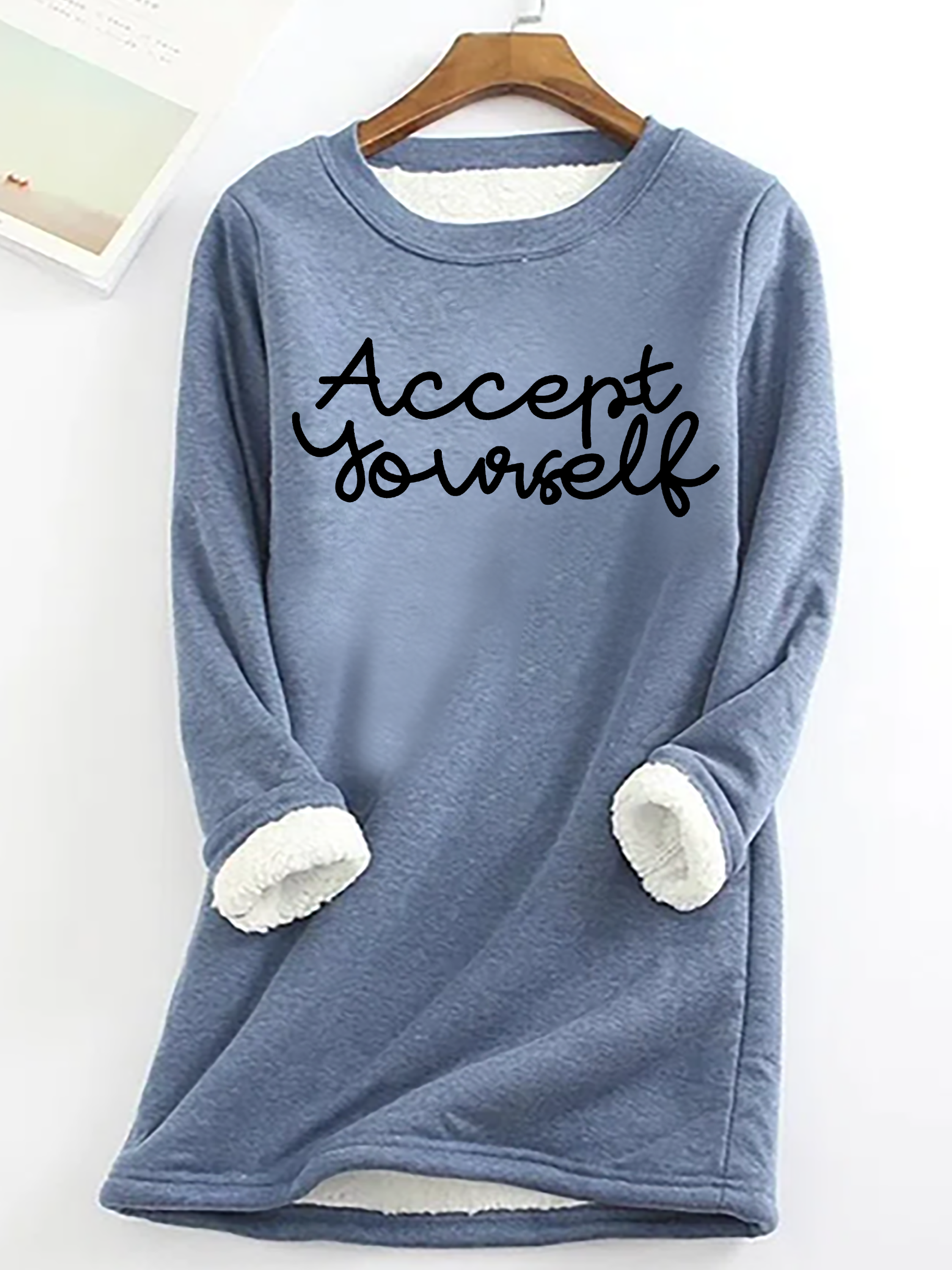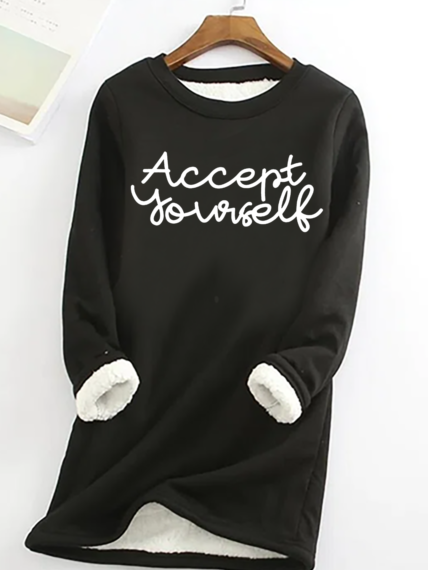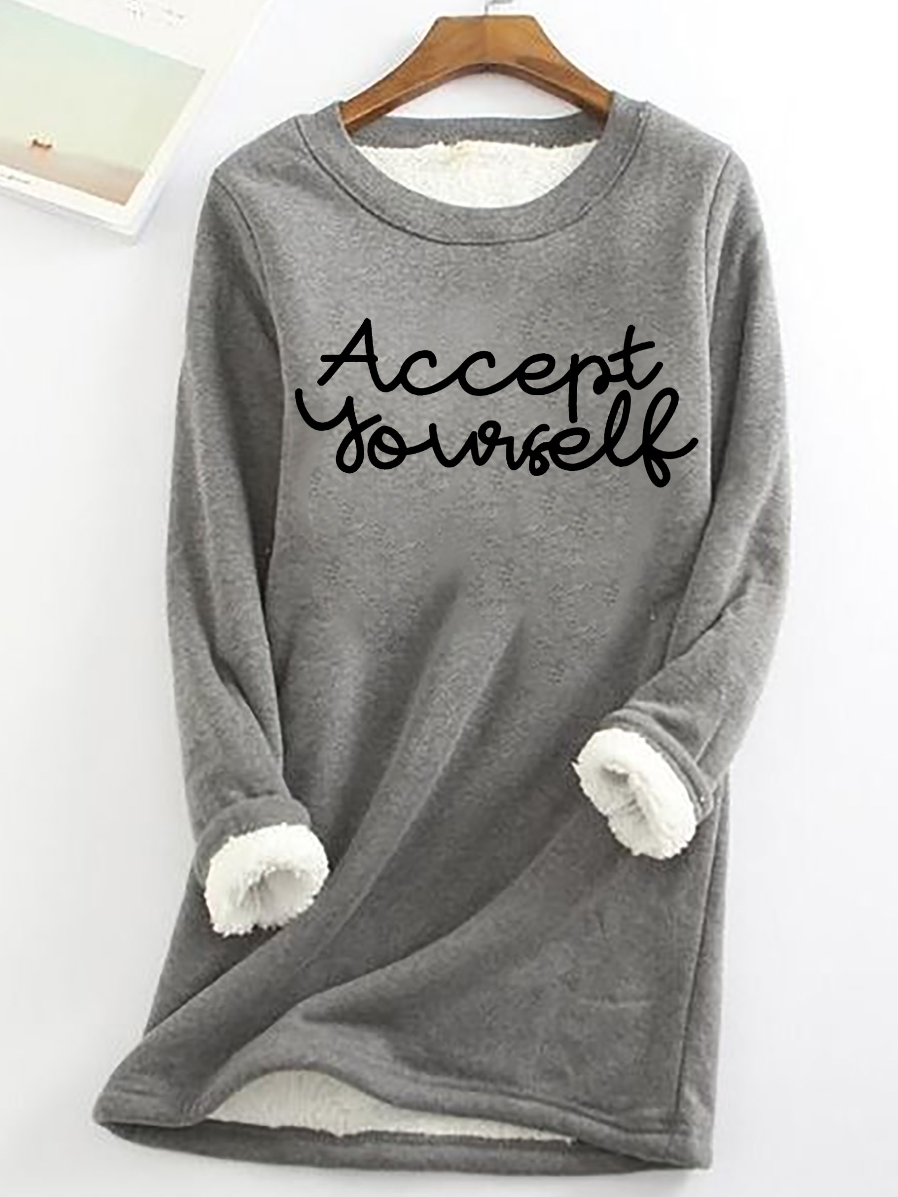 Accept Yourself Casual Fluff Fleece Fabric Sweatshirt