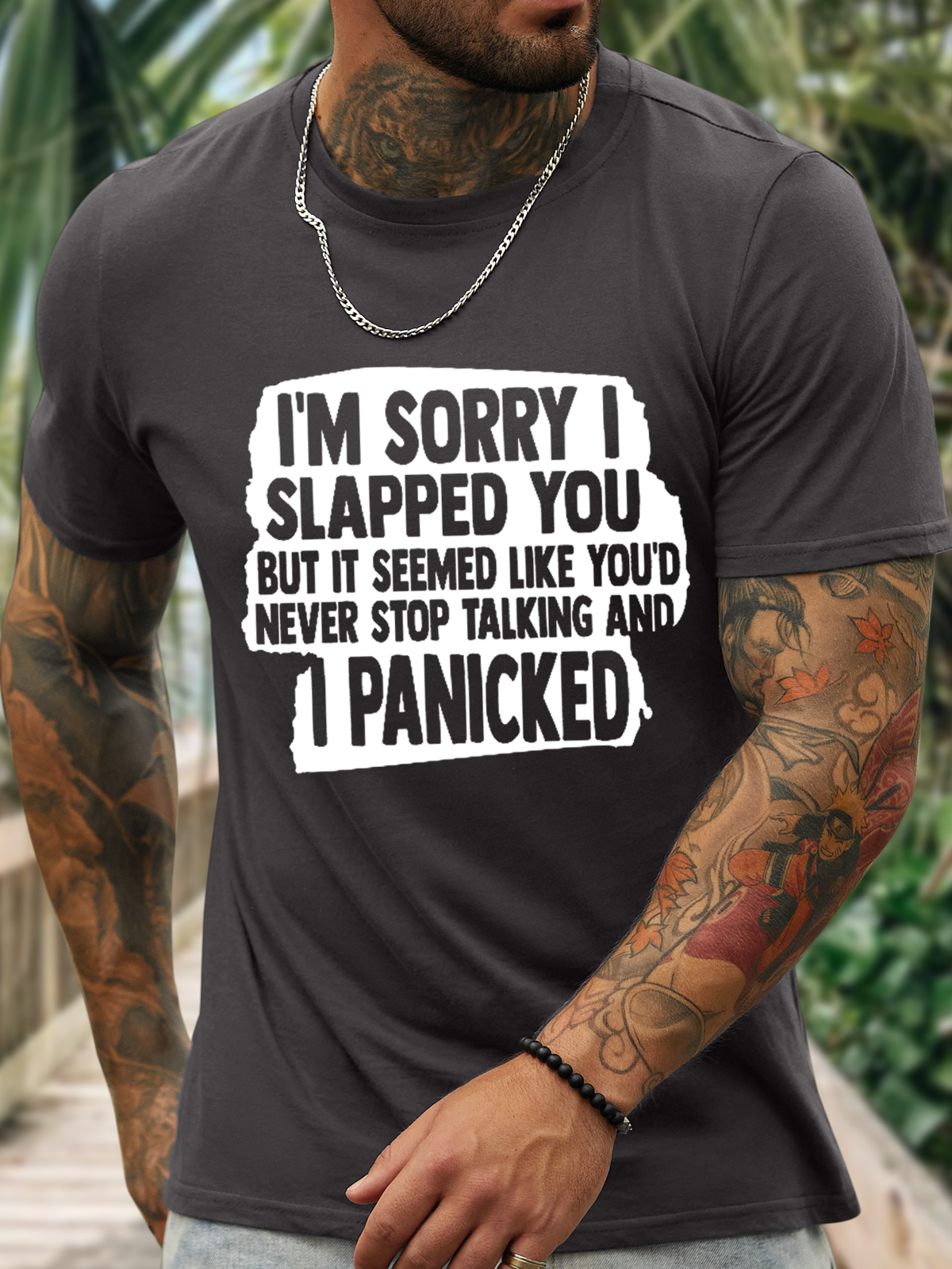 Men's Funny Word I'm Sorry I Slapped You Sarcastic Cotton Casual T-Shirt