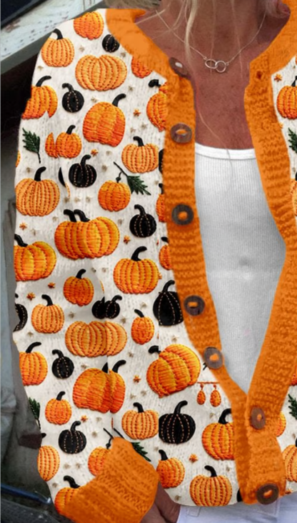 Lady Cute Pumpkin Crew Neck Casual Regular Fit Cardigan