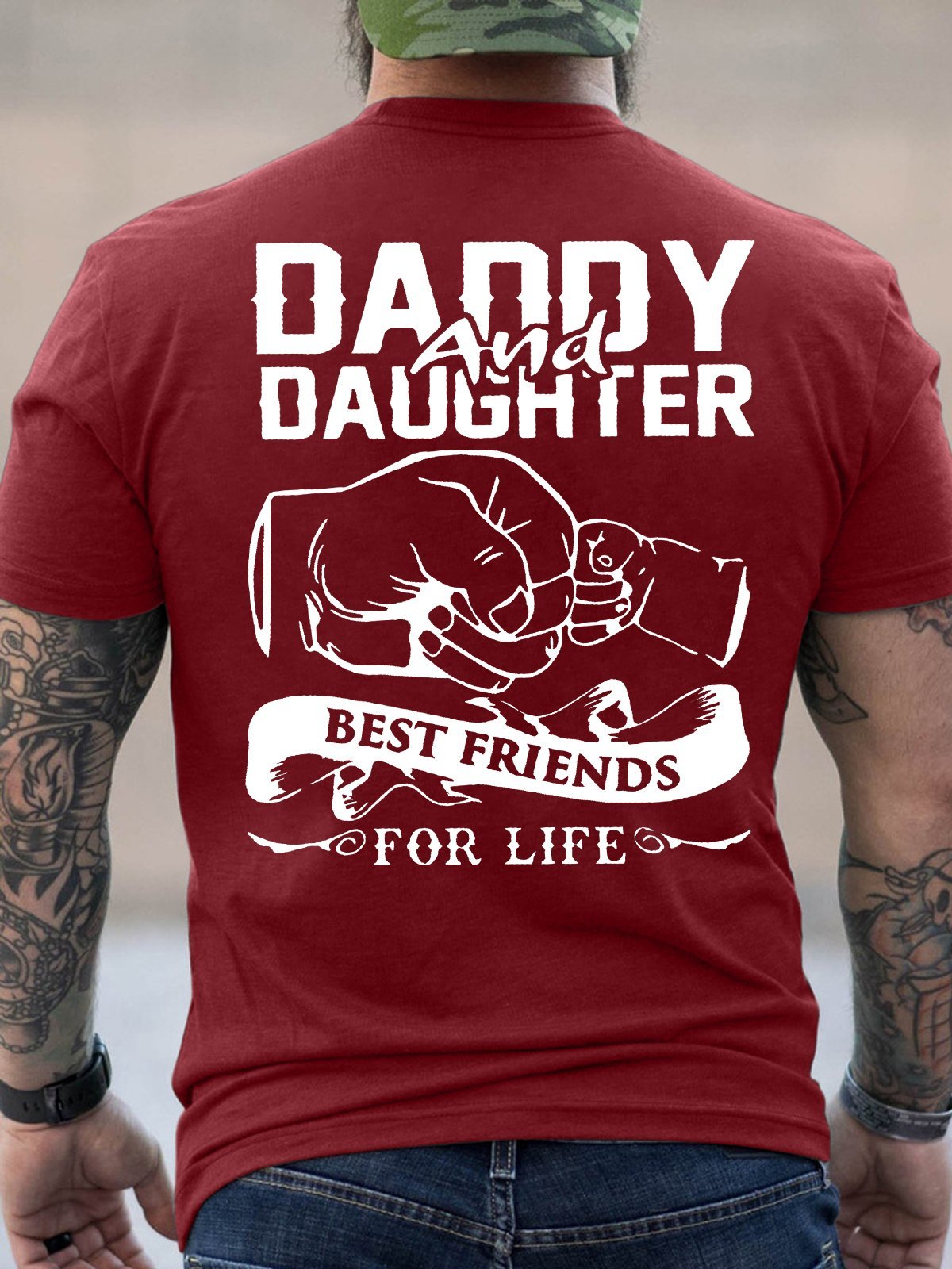 Men's Daddy And Daughter Best Friends For Life Funny Graphic Printing Father's Day Gift Cotton Loose Text Letters Casual T-Shirt