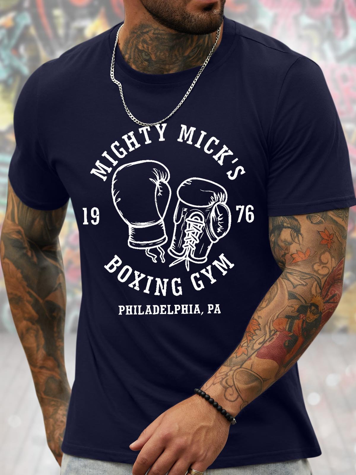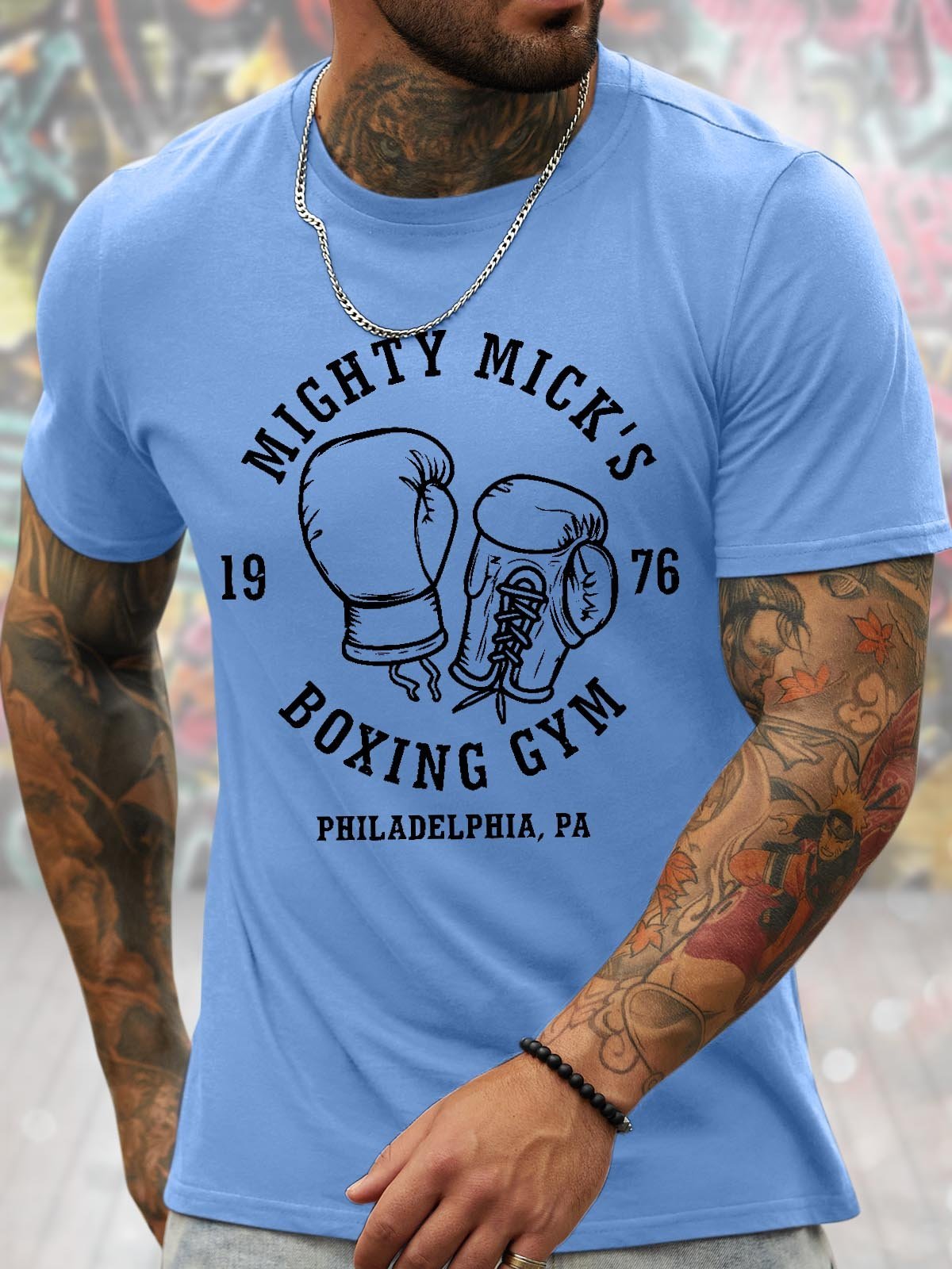 Men's Mighty Mick'S 1976 Boxing Gym Philadelphia Pa Funny Graphic Printing Casual Loose Text Letters Cotton T-Shirt