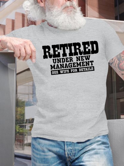 Men's Retired Under New Management See Wife For Details Funny Graphic Printing Cotton Loose Text Letters Casual T-Shirt