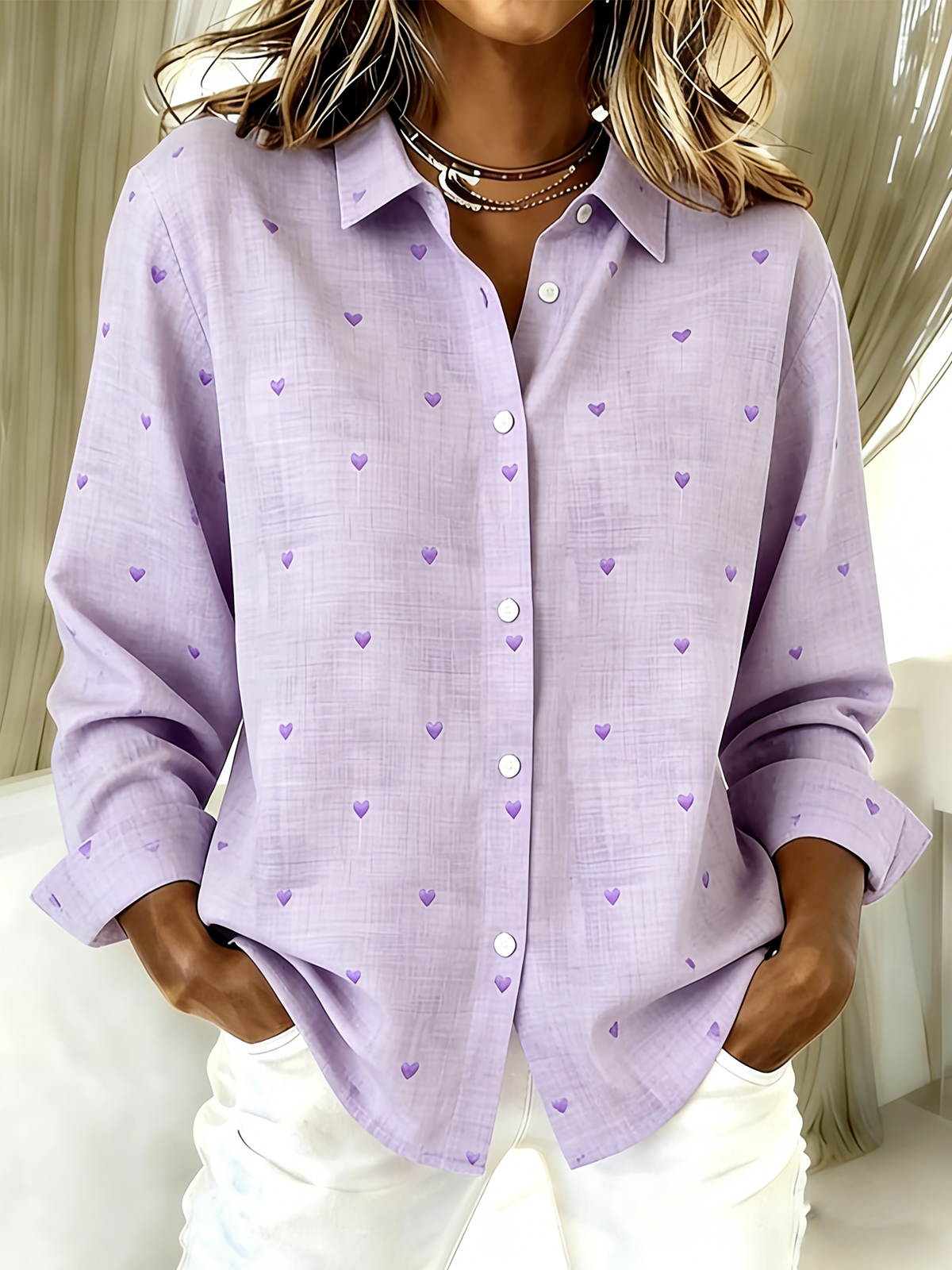 Shirt Collar Loose Heart/Cordate Casual Shirt