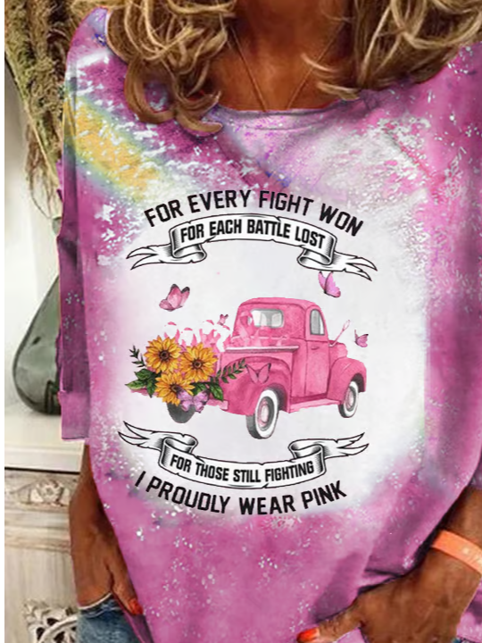 Women's I Proudly Wear Pink Breast Cancer Awareness Printed Crew Neck Sweatshirt