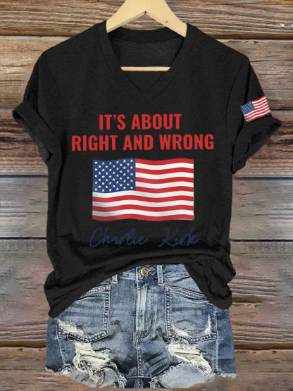 Women's It's About Right And Wrong Print V Neck T-shirt