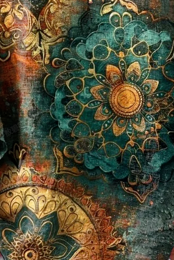 Women's National Mandala Art Patterns Print V-neck Comfortable Cotton T-shirt