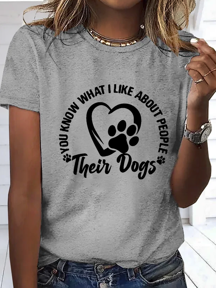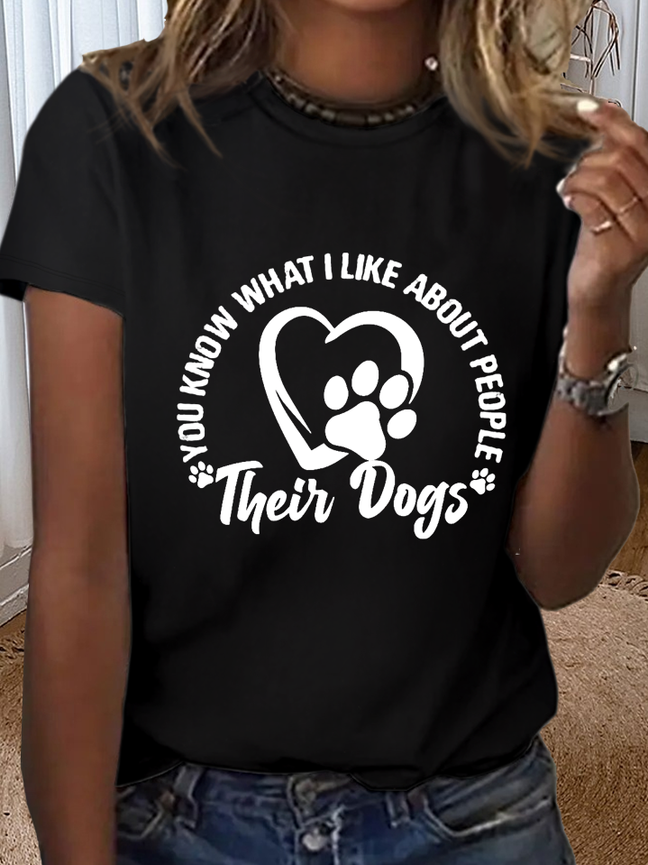 Women's Funny Dog Lover You Know What I Like About People Their Dogs Crew Neck Simple T-Shirt