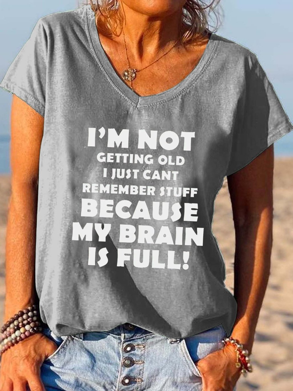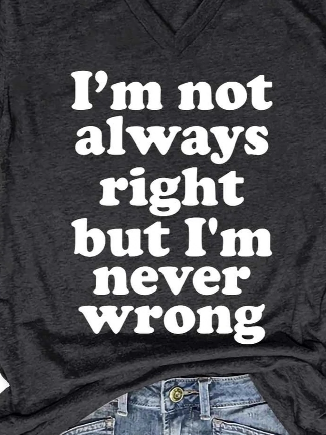 Funny text print v-neck short sleeve T-shirt