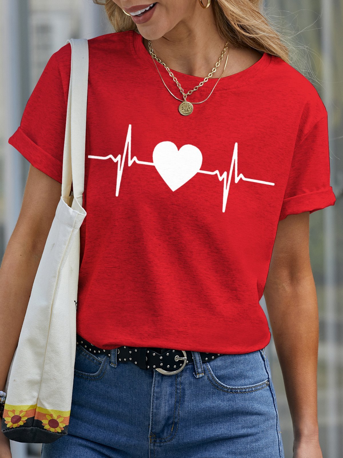 Funny Print Crew Neck Casual Short Sleeve T-shirt