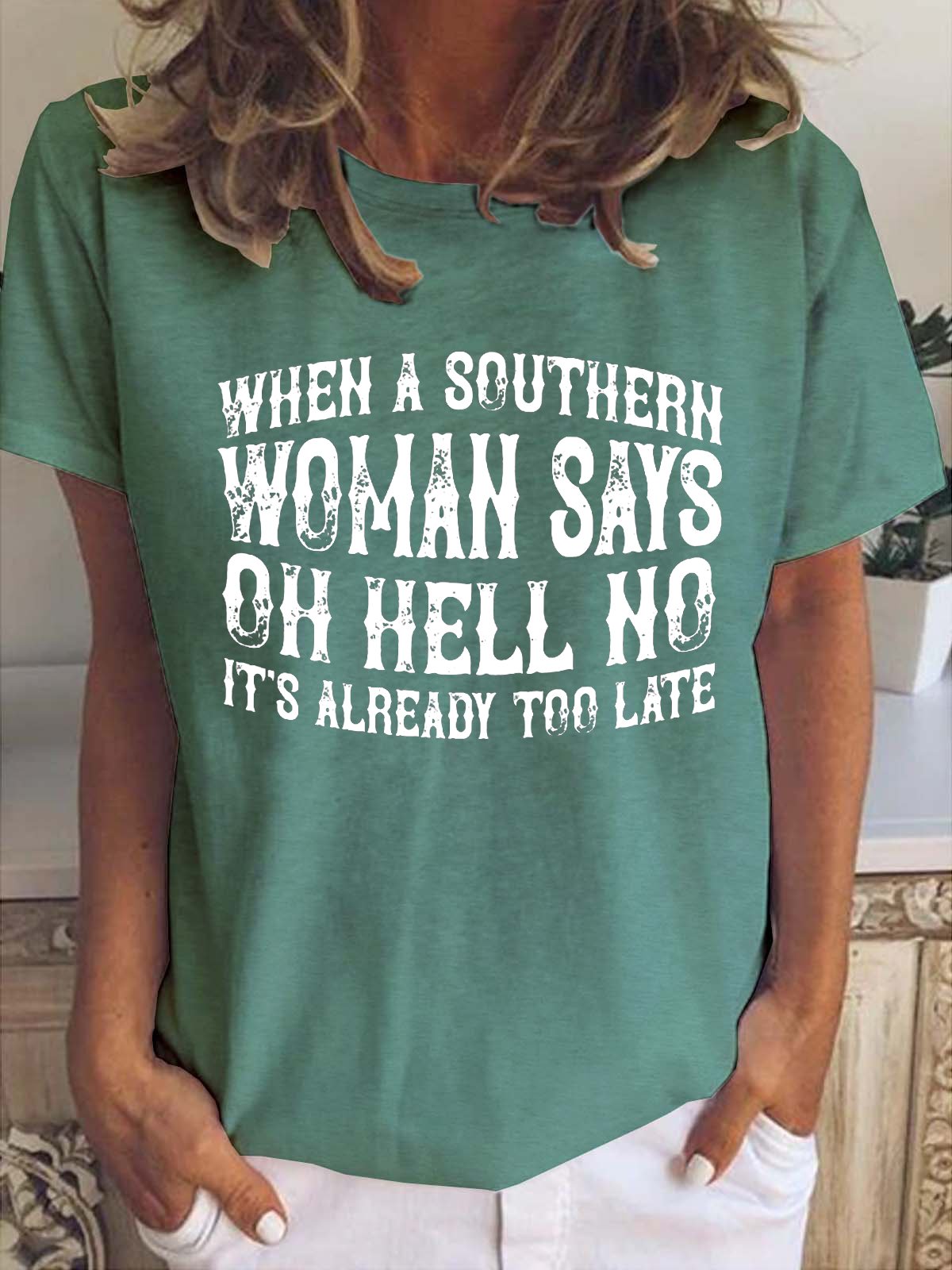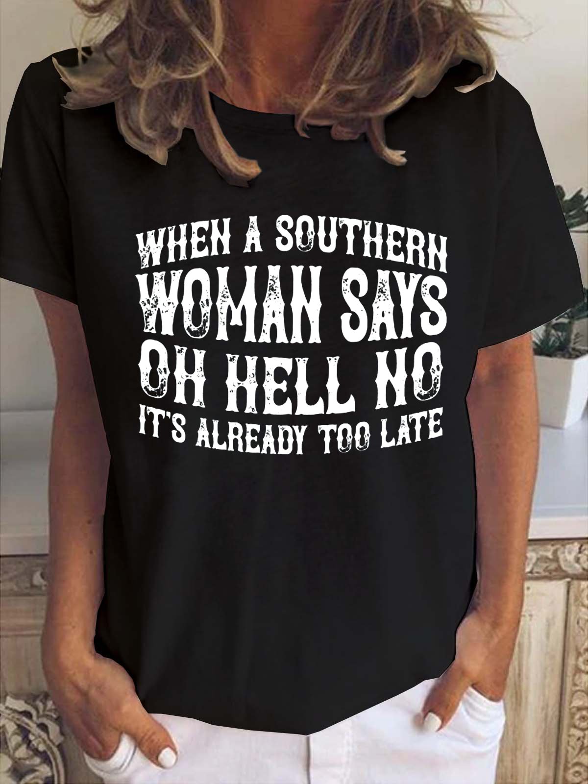 Funny text print round neck short sleeve T-shirt