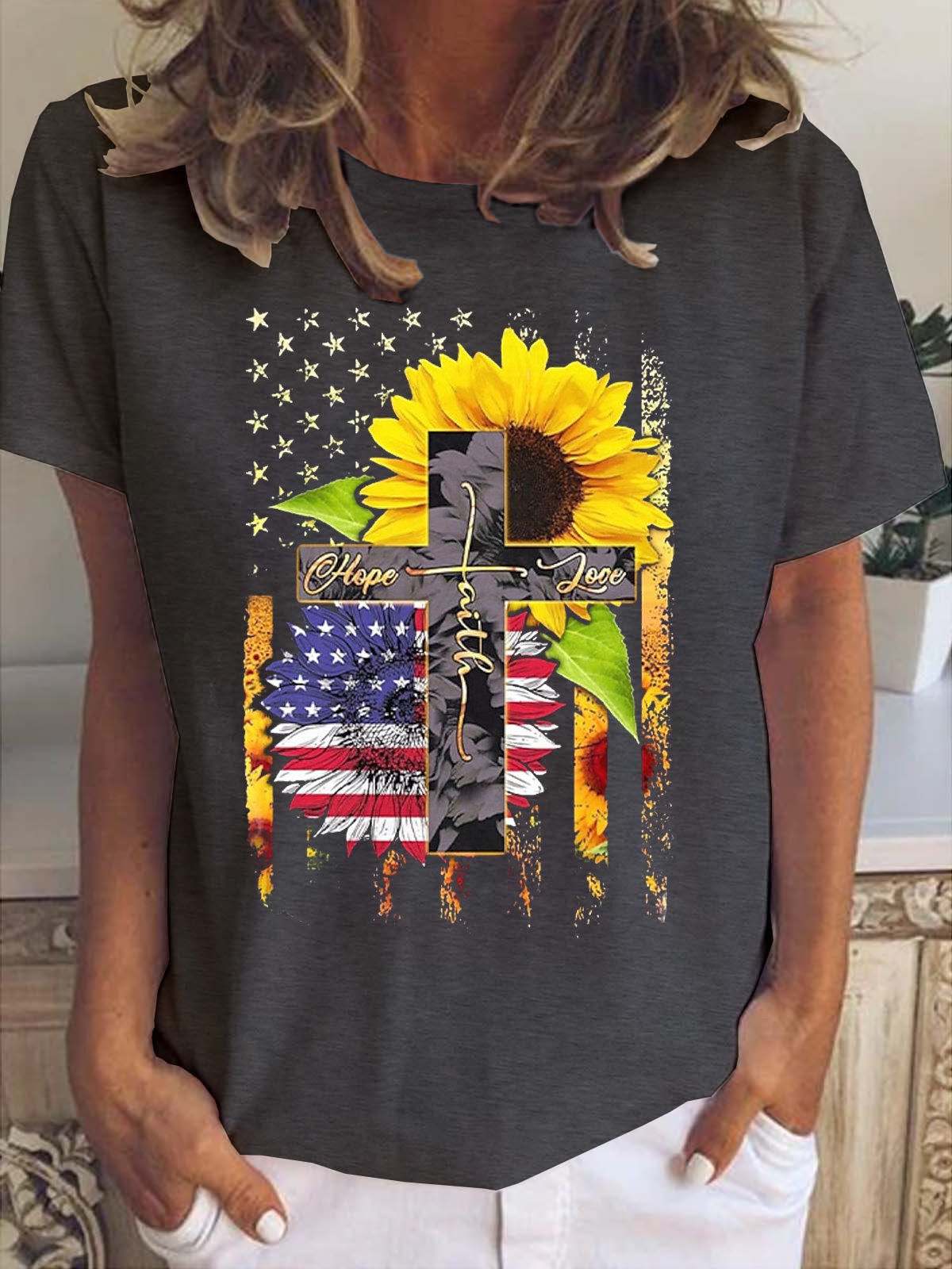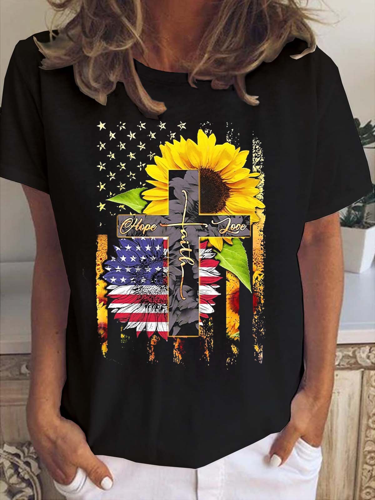 Faith Jesus Cross Daisy Women's Short sleeve tops
