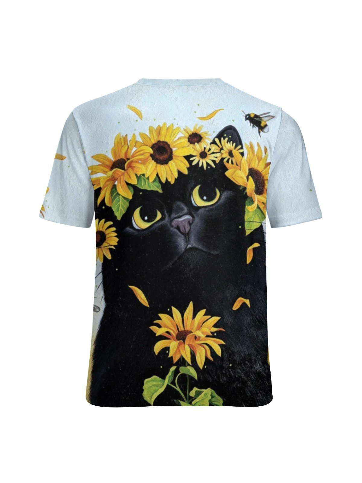 Casual Abstract Sunflower Print Crew Neck Short Sleeve T-Shirt