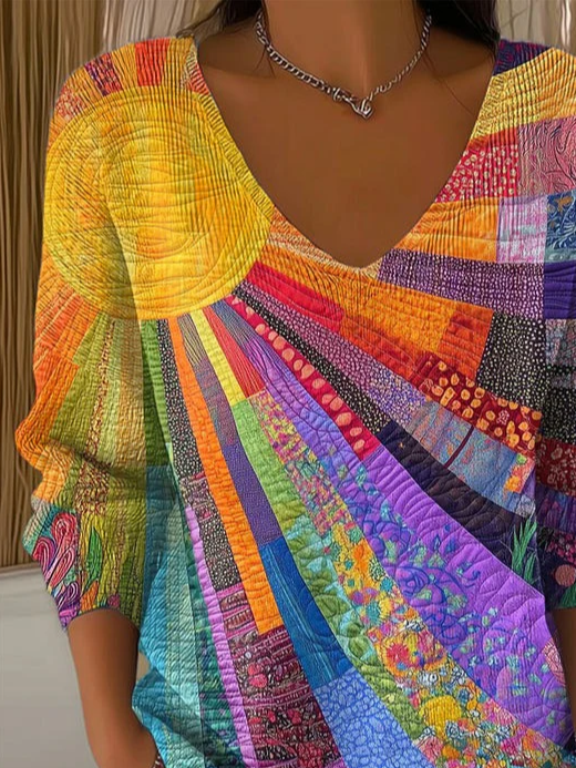 Women's Long Sleeve T-shirt Spring/Fall As Picture Abstract Printing V Neck Daily Going Out Casual Top