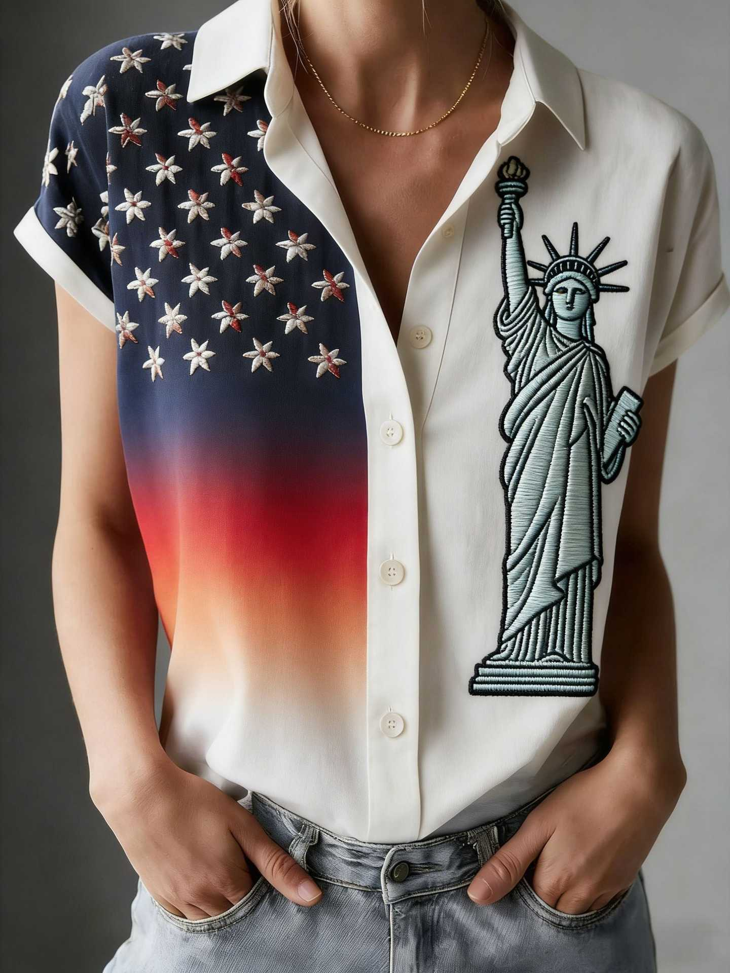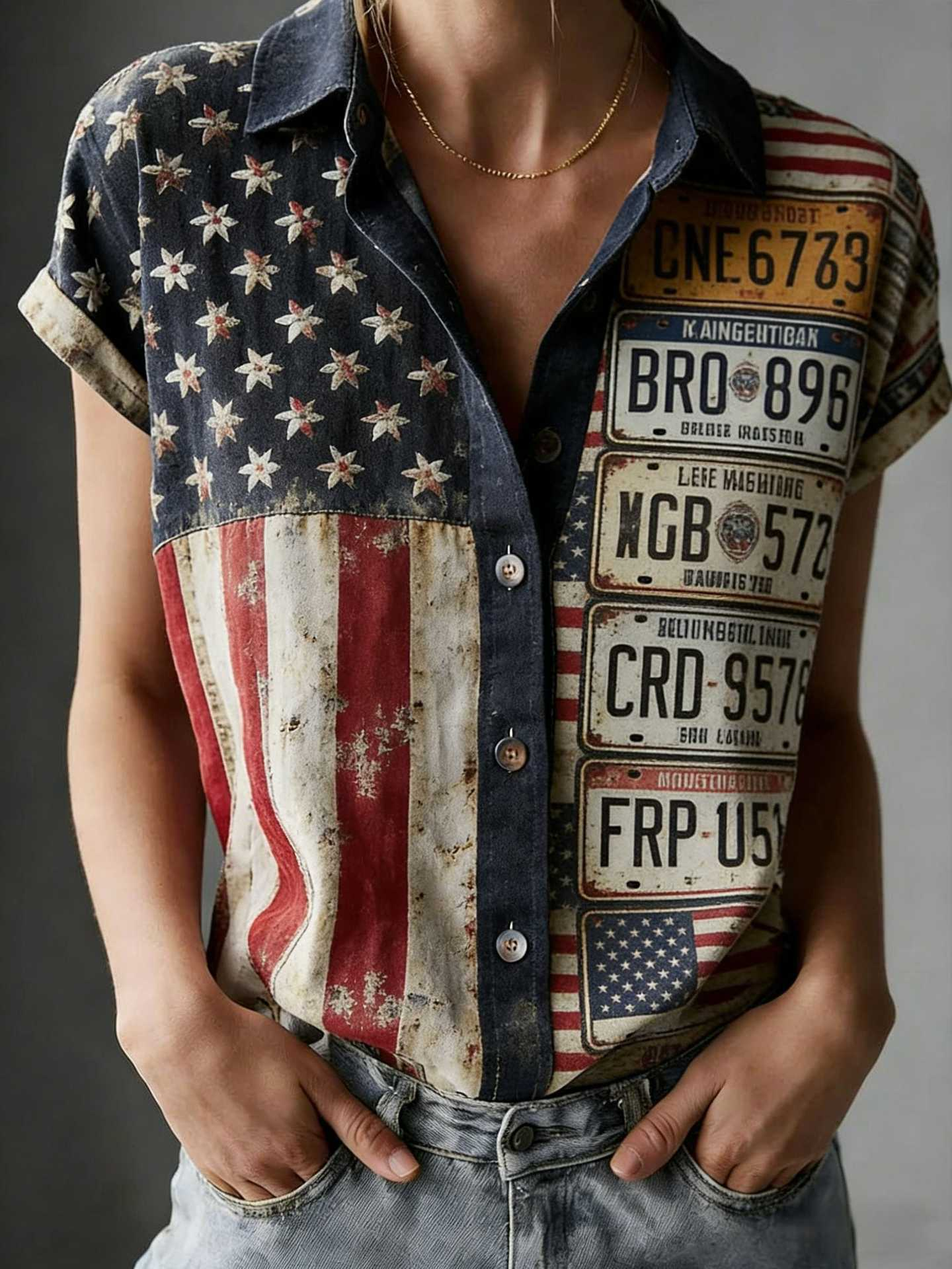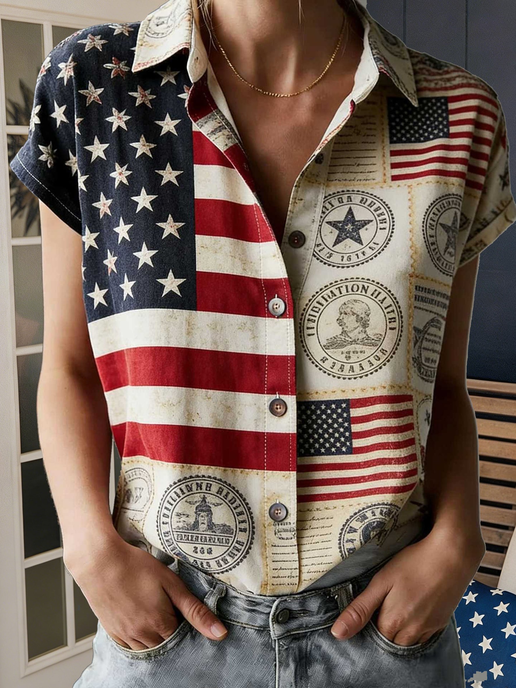 3D Printing America Flag Shirt Collar Short Sleeve Letter Pattern Vintage Casual Shirt