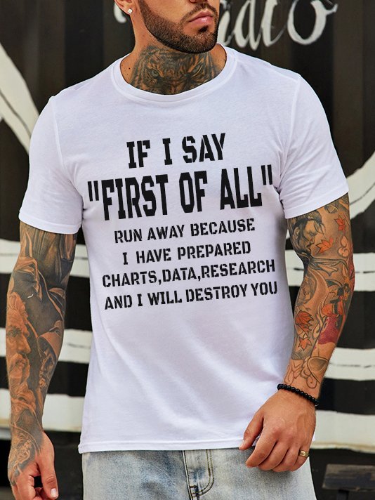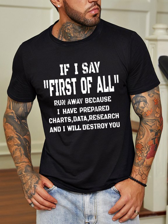 Funny text printed round neck short-sleeved T-shirt