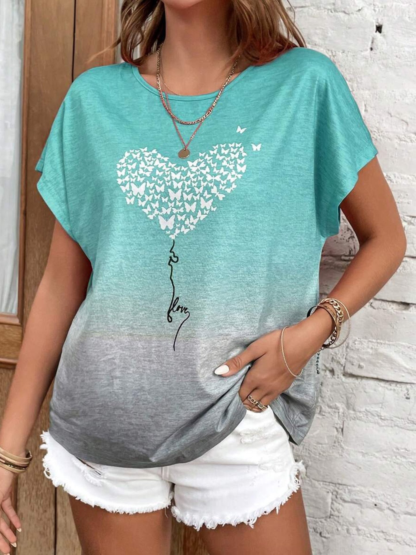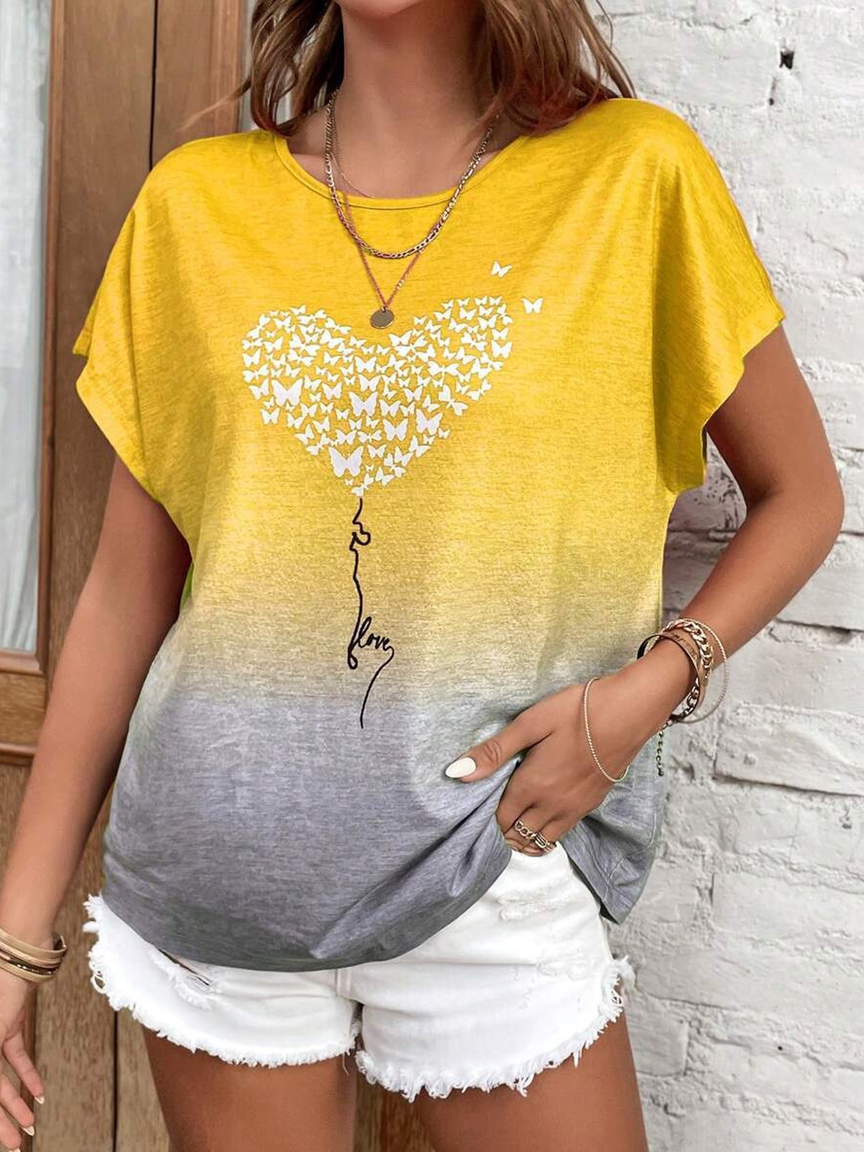 Heart/Cordate Print Crew Neck Sleeveless Jersey Casual T-Shirt