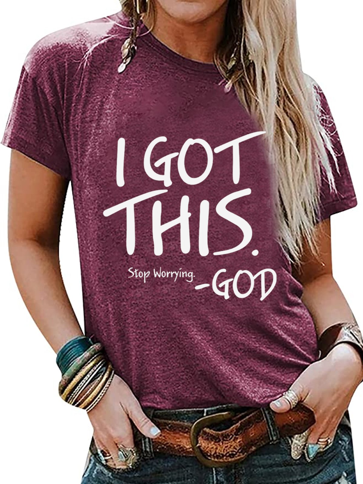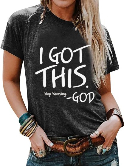 I Got This Stop Worrying God Casual Letter Crew Neck T-shirt