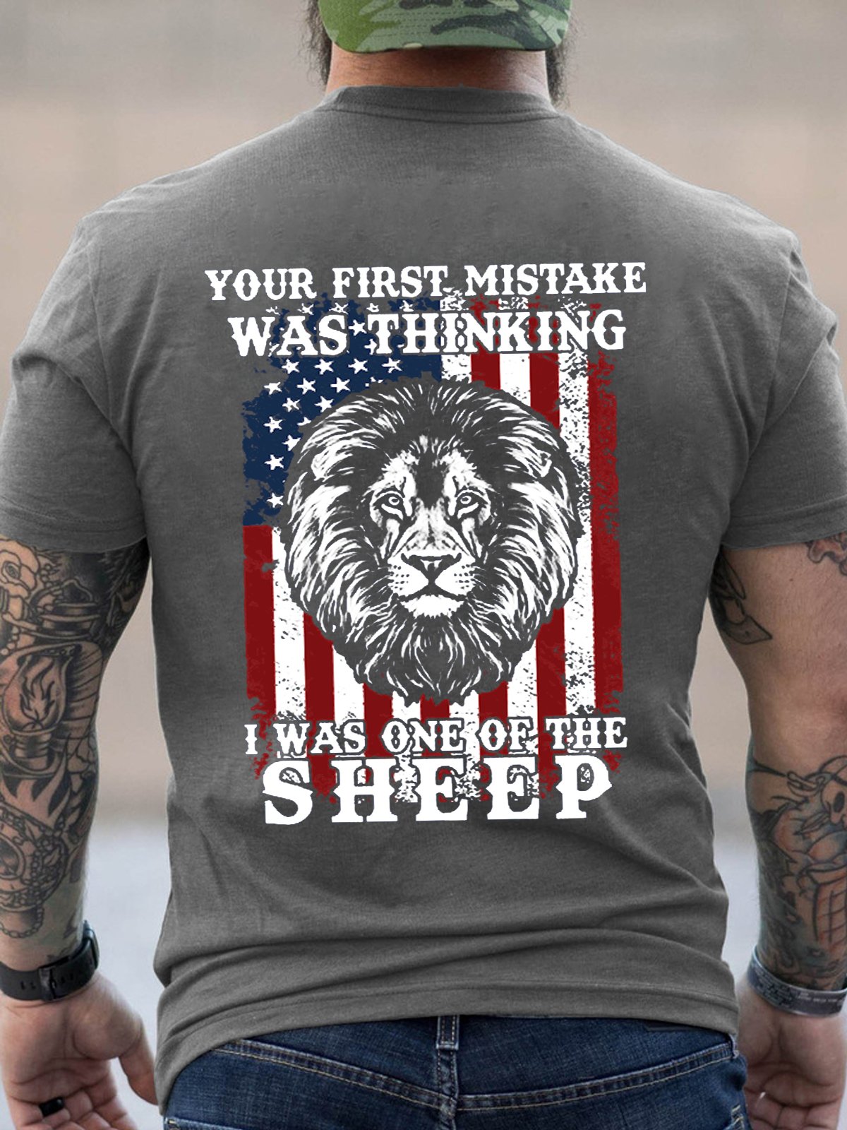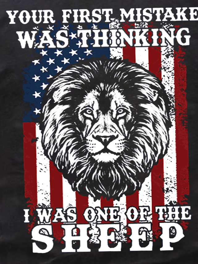 Lion Us Flag Your First Mistake Was Thinking I Was One Of The Sheep Short Sleeve Cotton Crew Neck Short Sleeve T-Shirt