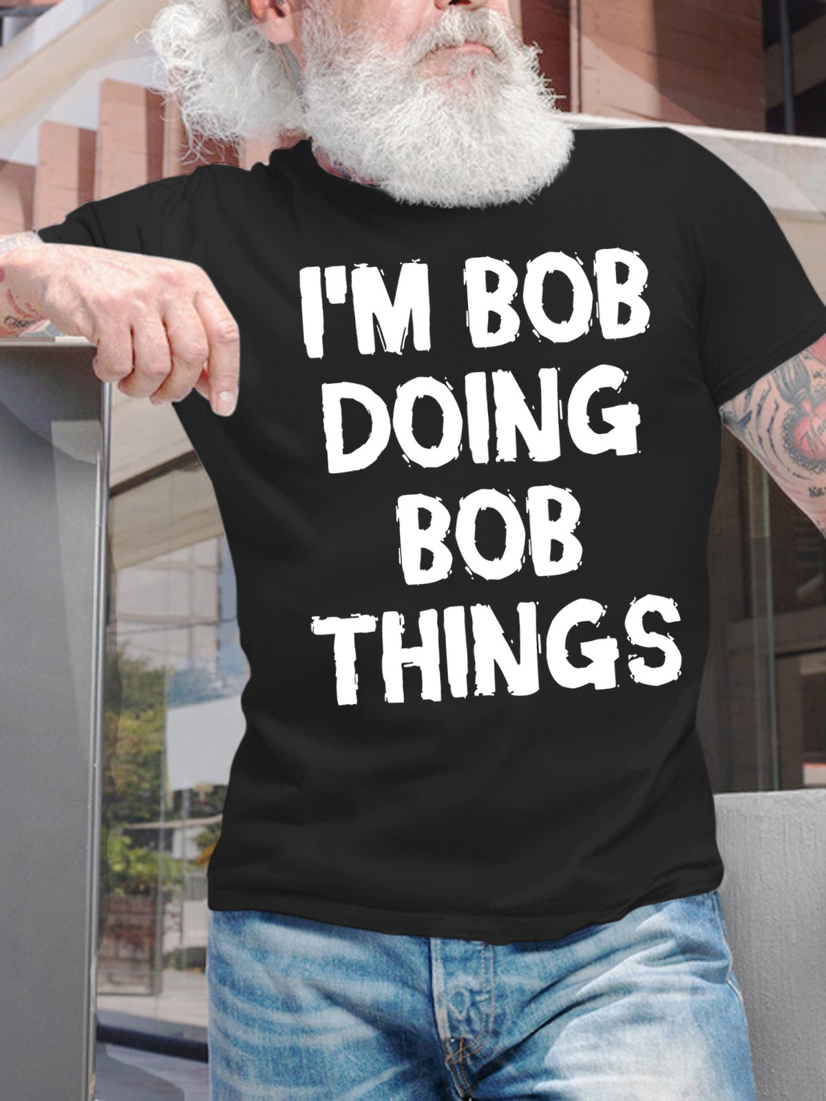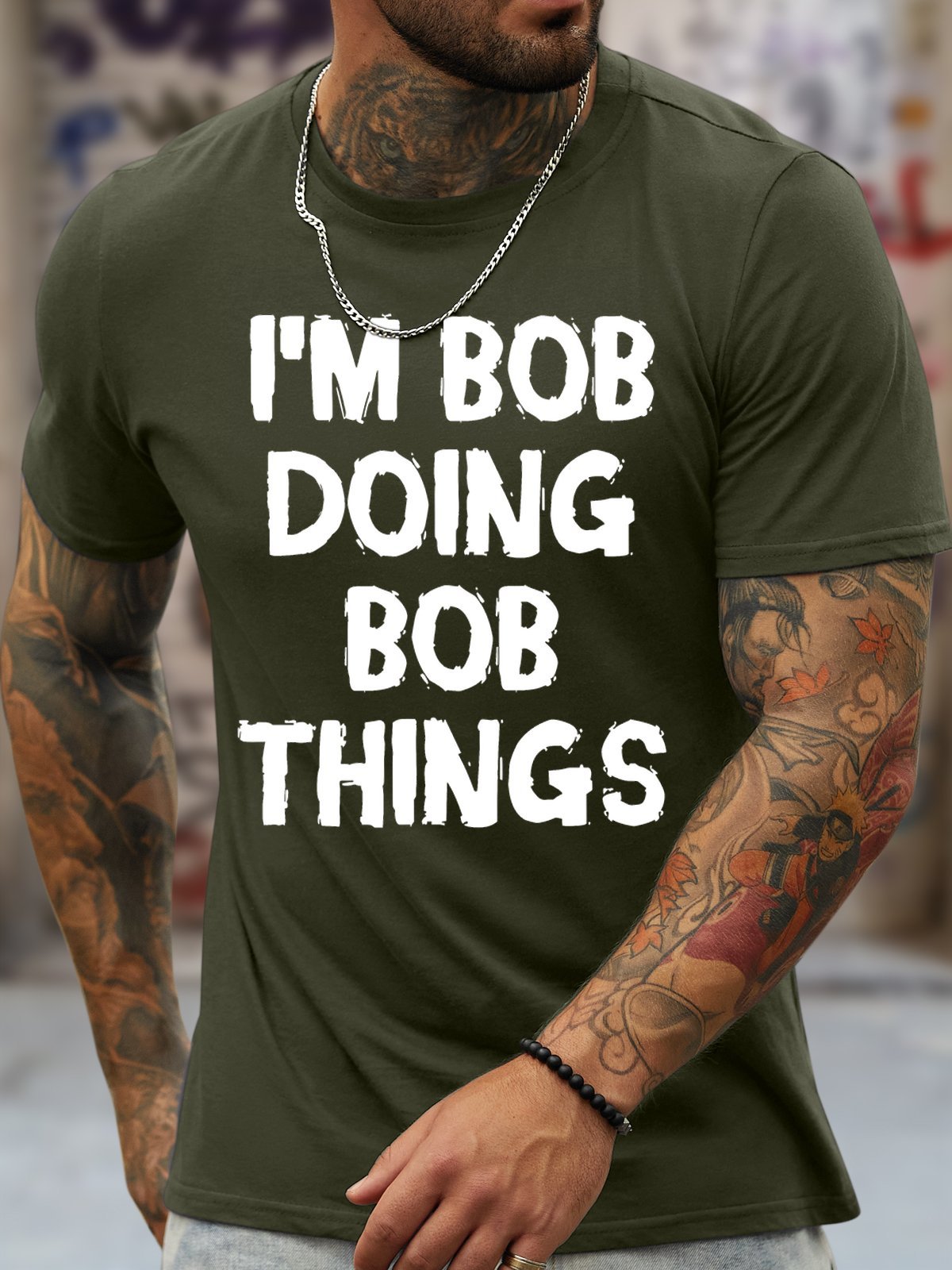Men's Funny I Am Bob Doing Bob Things Graphic Printing Loose Crew Neck Cotton Casual T-Shirt