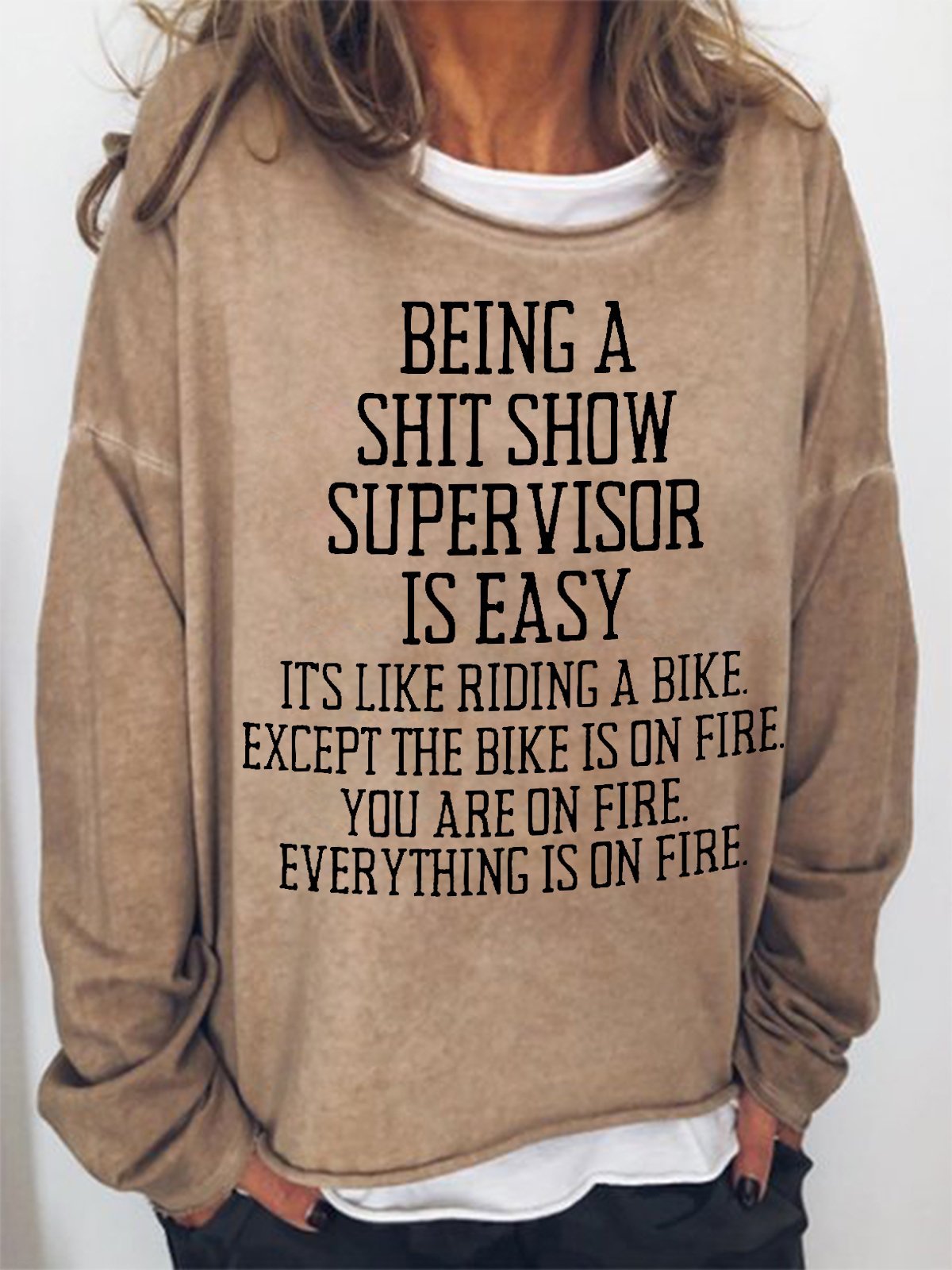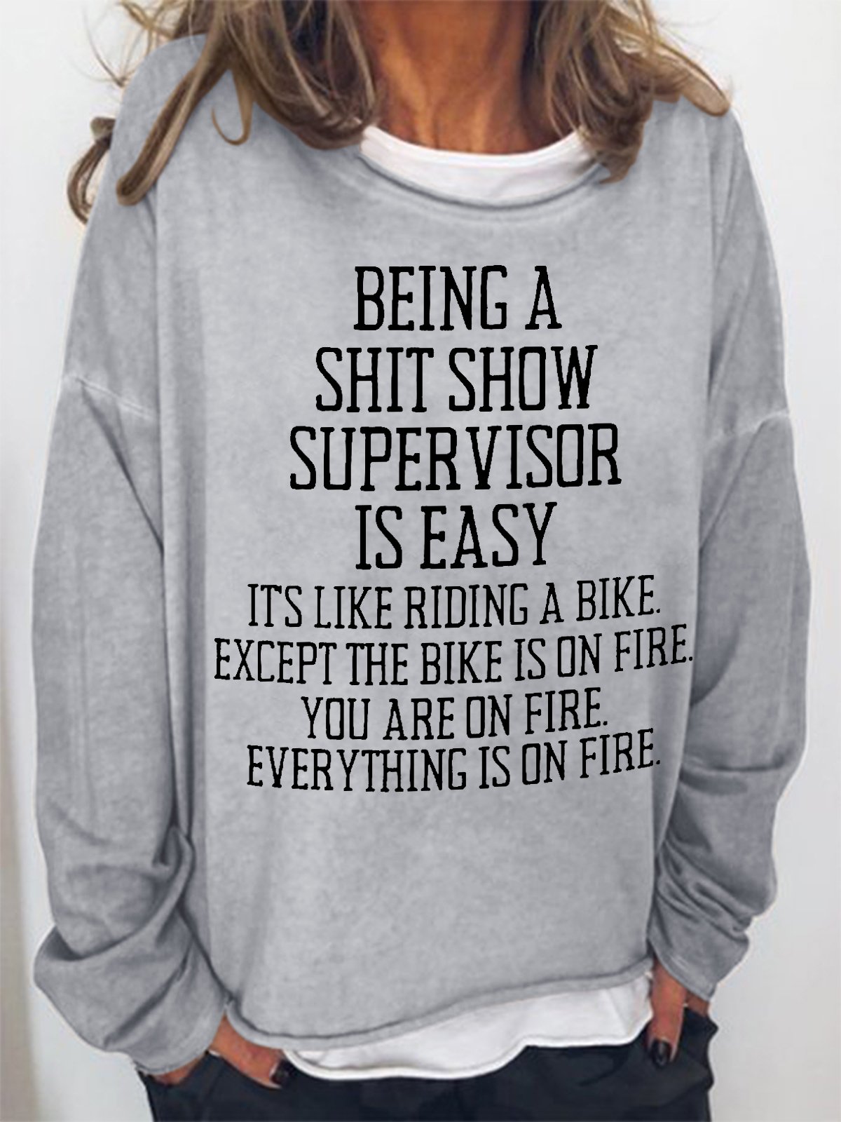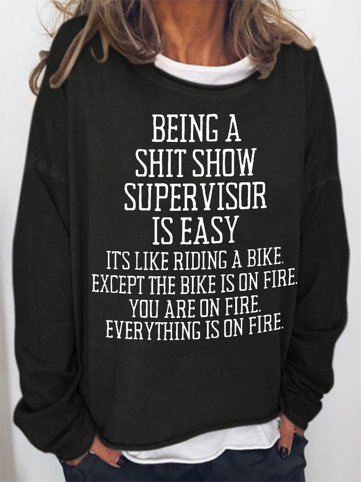 Women Funny Word Being a shit show supervisor is easy Text Letters Crew Neck Sweatshirt