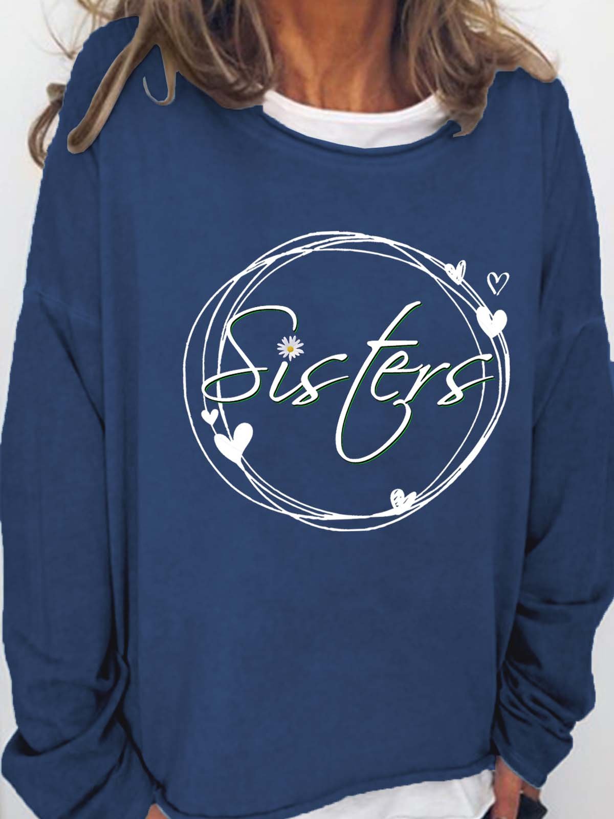 Women Floral Sisters Crew Neck Casual Text Letters Sweatshirts