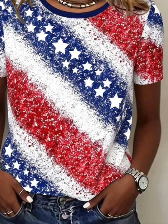 Women's Short Sleeve T-shirt Summer As Picture Independence Day (Flag) Printing Jersey Crew Neck Daily Going Out Casual Top