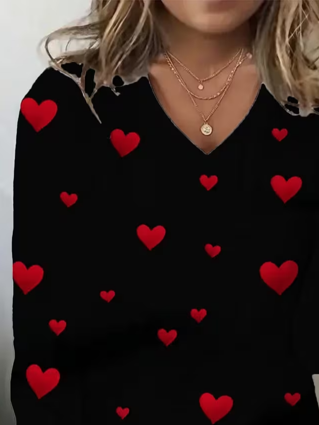 Women's Long Sleeve T-shirt Spring/Fall Black Heart/Cordate Printing Jersey V Neck Daily Going Out Casual Top