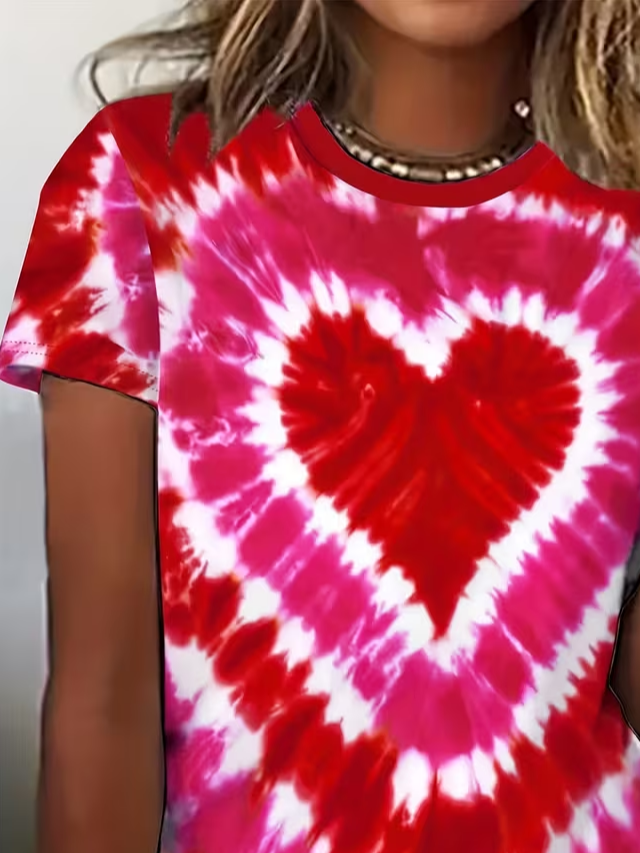 Women's Short Sleeve T-shirt Summer Deep Pink Heart/Cordate Printing Jersey Crew Neck Daily Going Out Casual Top