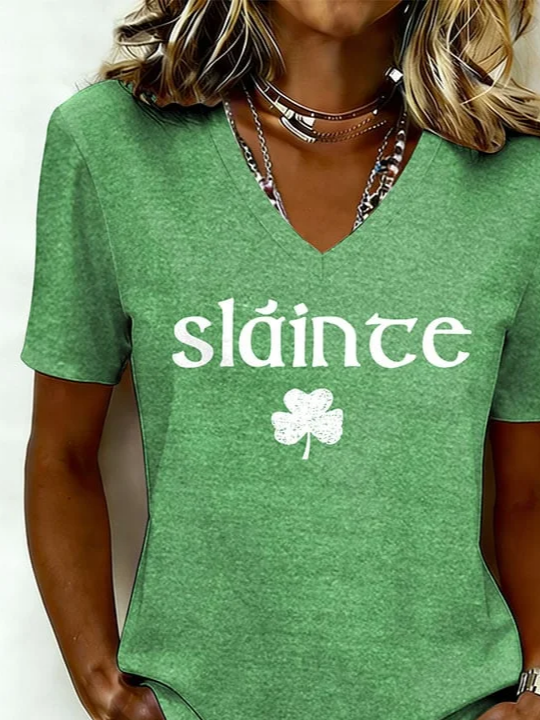 Women's Short Sleeve T-shirt Summer Green Shamrock Jersey V Neck Holiday Going Out Casual Top