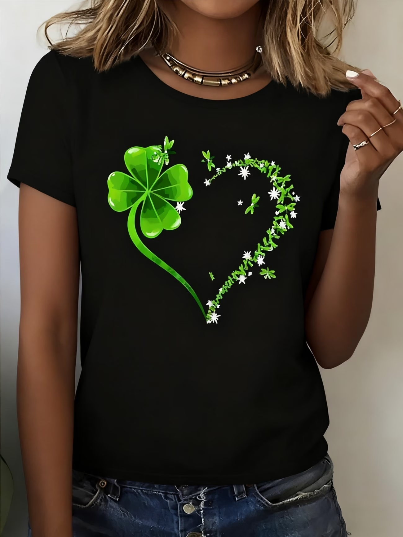 Women's Short Sleeve T-shirt Summer Black Shamrock Printing Jersey Crew Neck Daily Going Out Casual Top