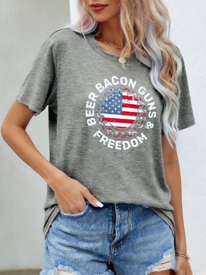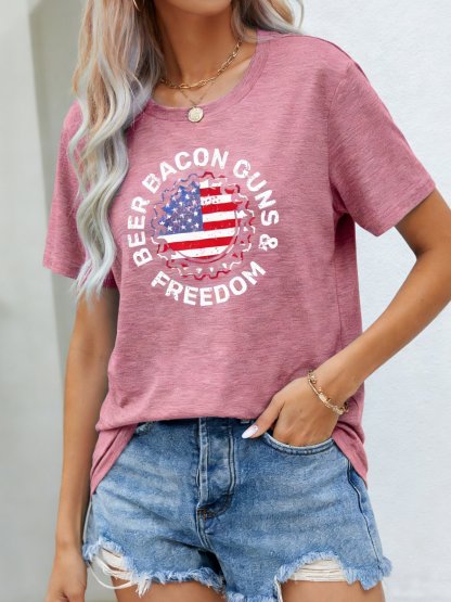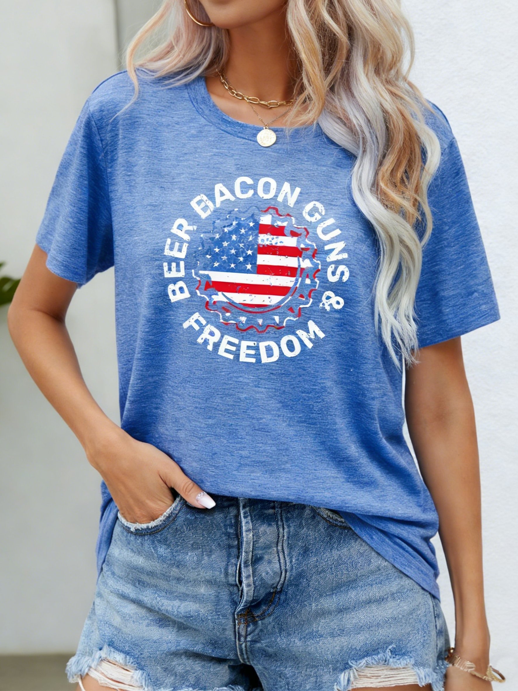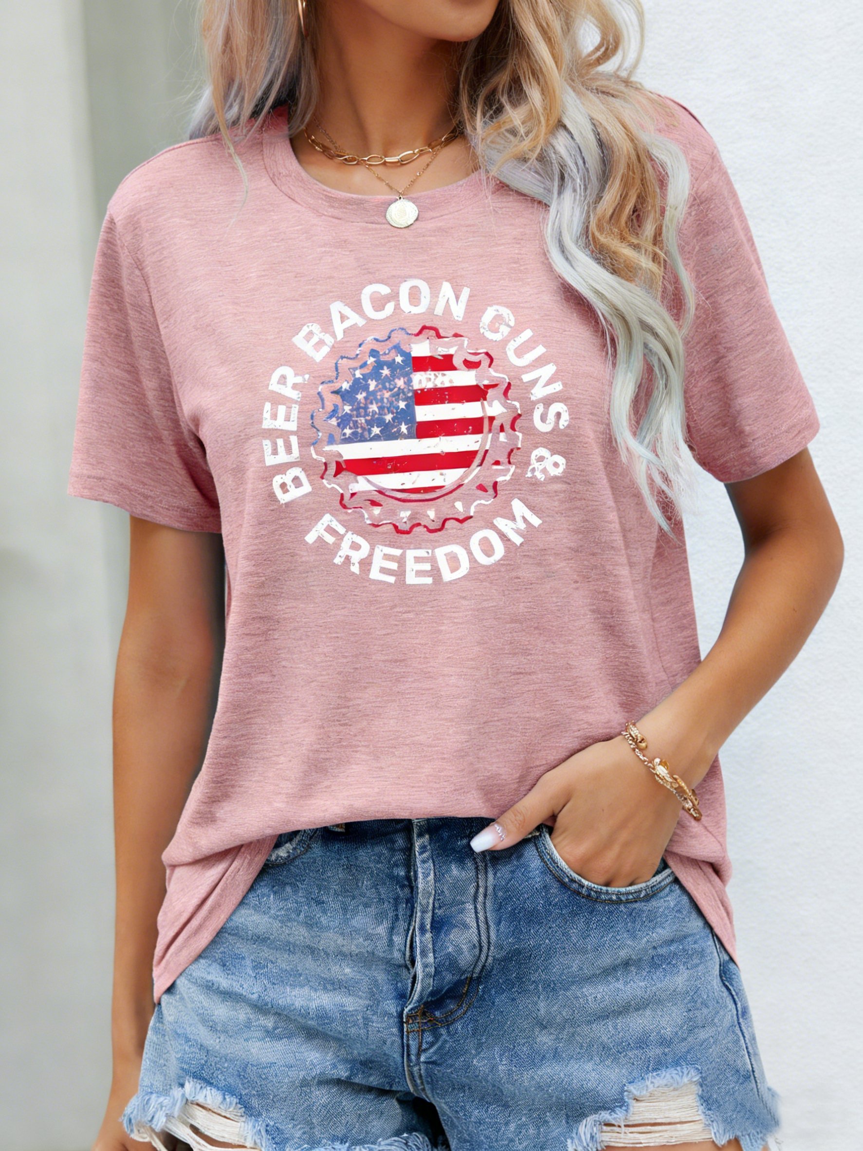 3D Printing Crew Neck Short Sleeve Independance Day Loose Going Out Casual T-Shirt