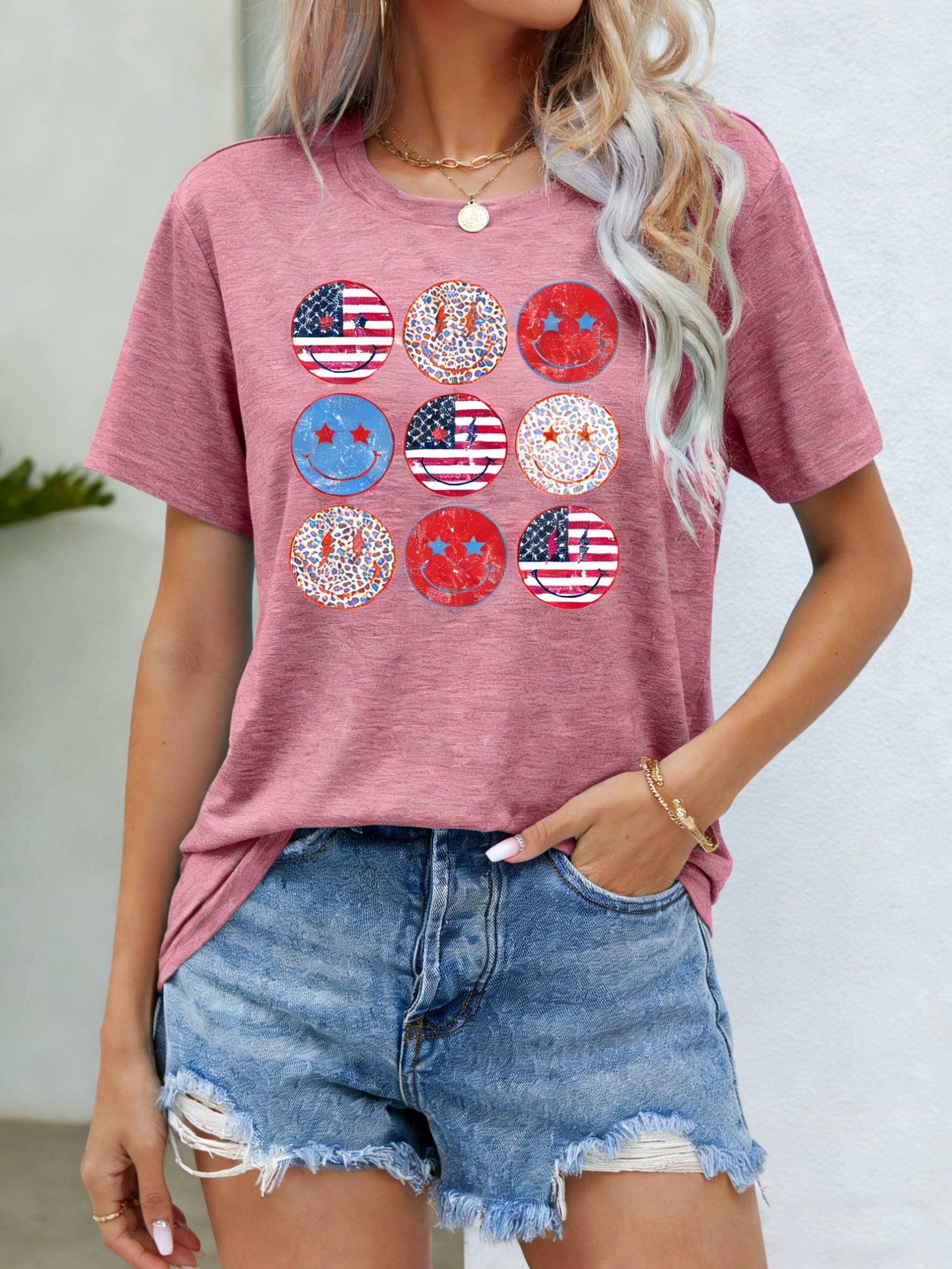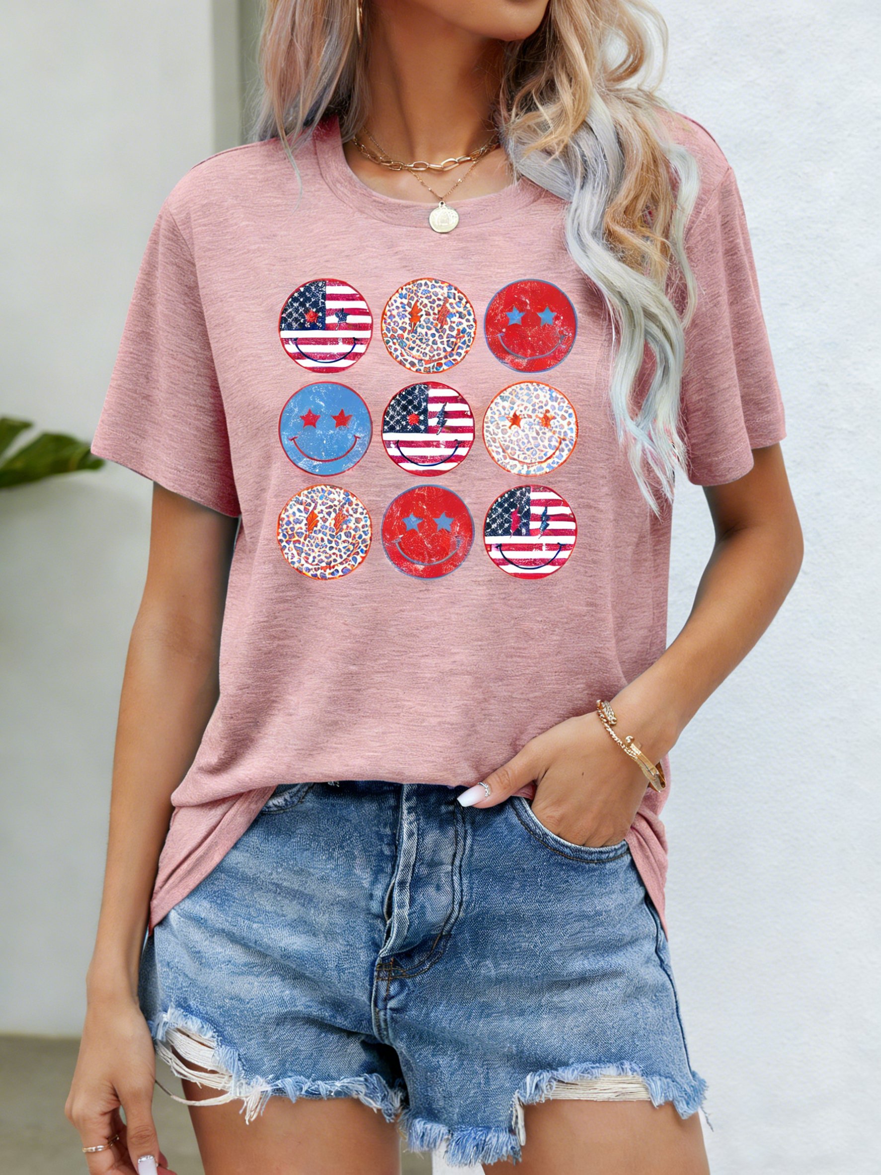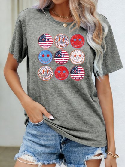 3D Printing Crew Neck Short Sleeve Independance Day Loose Going Out Casual T-Shirt