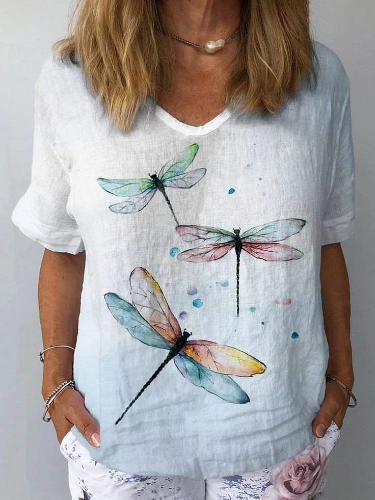 Cotton And Linen Butterfly Elegant T-Shirt