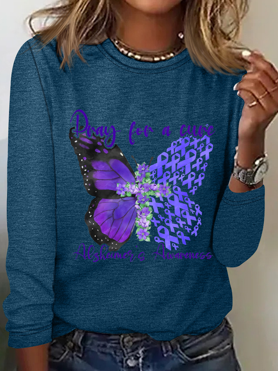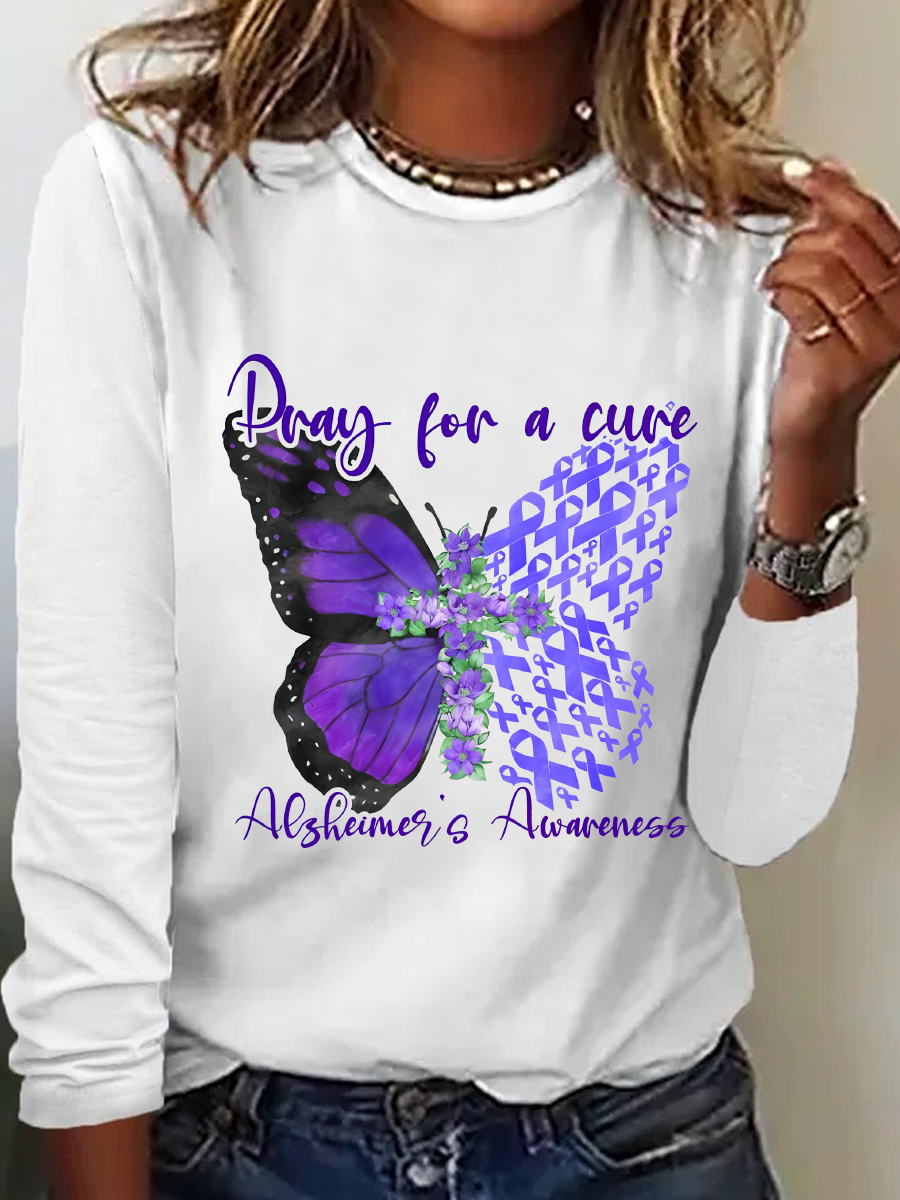 Pray For A Cure Alzheimer's Awareness Casual Long Sleeve Shirt