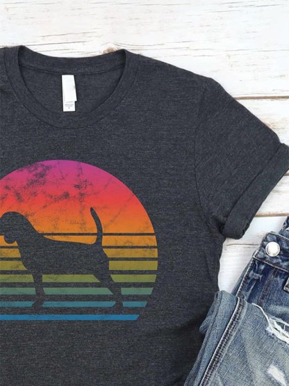 Puppy Shadow Rainbow Semi-circular PrinT-Shirt